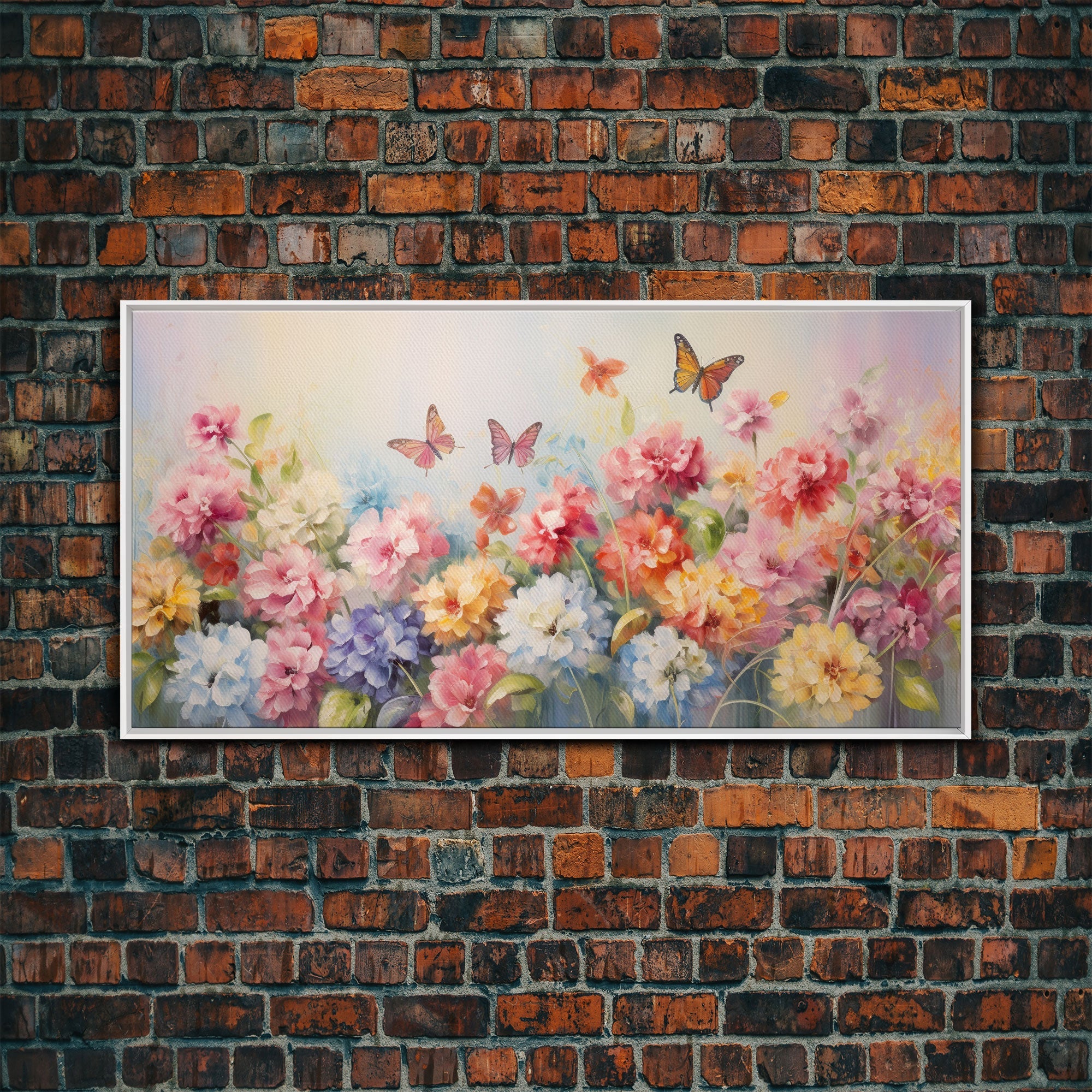 Butterfly Wall Art, Flowers Wall Art, Colorful Fowers, Panoramic Art, Wall Art, Canvas Art, Landscape Art, Meadow Art, Botanical Art