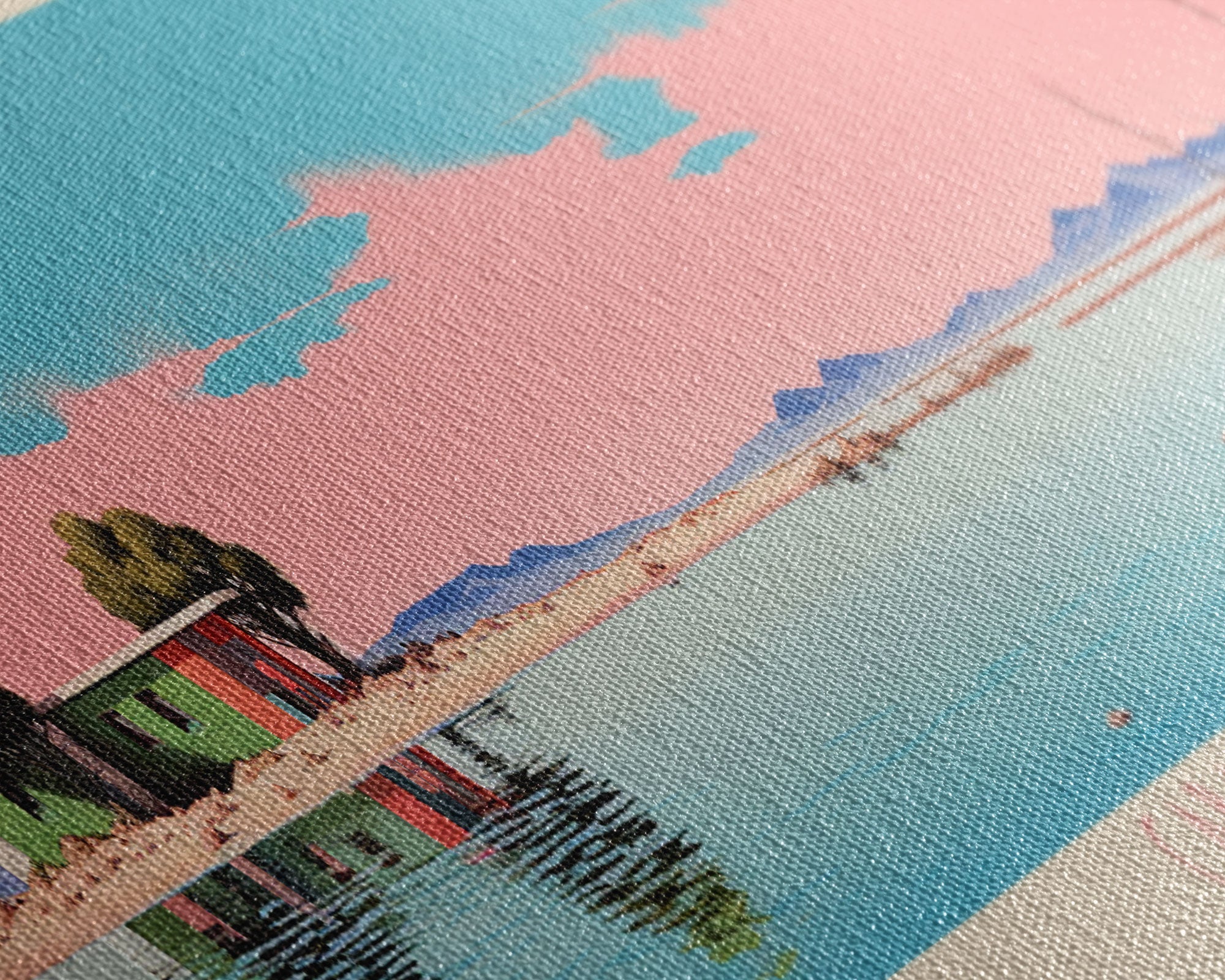 Most of our canvases are made in the USA, with the exception of canvases ordered with the light oak unstained frames, and any large canvases (24x48, 30x60, 16x48 and 20x60) ordered WITH a frame. These are temporarily made in and shipped from Europe, while we try to find a more consistent supplier in the USA.