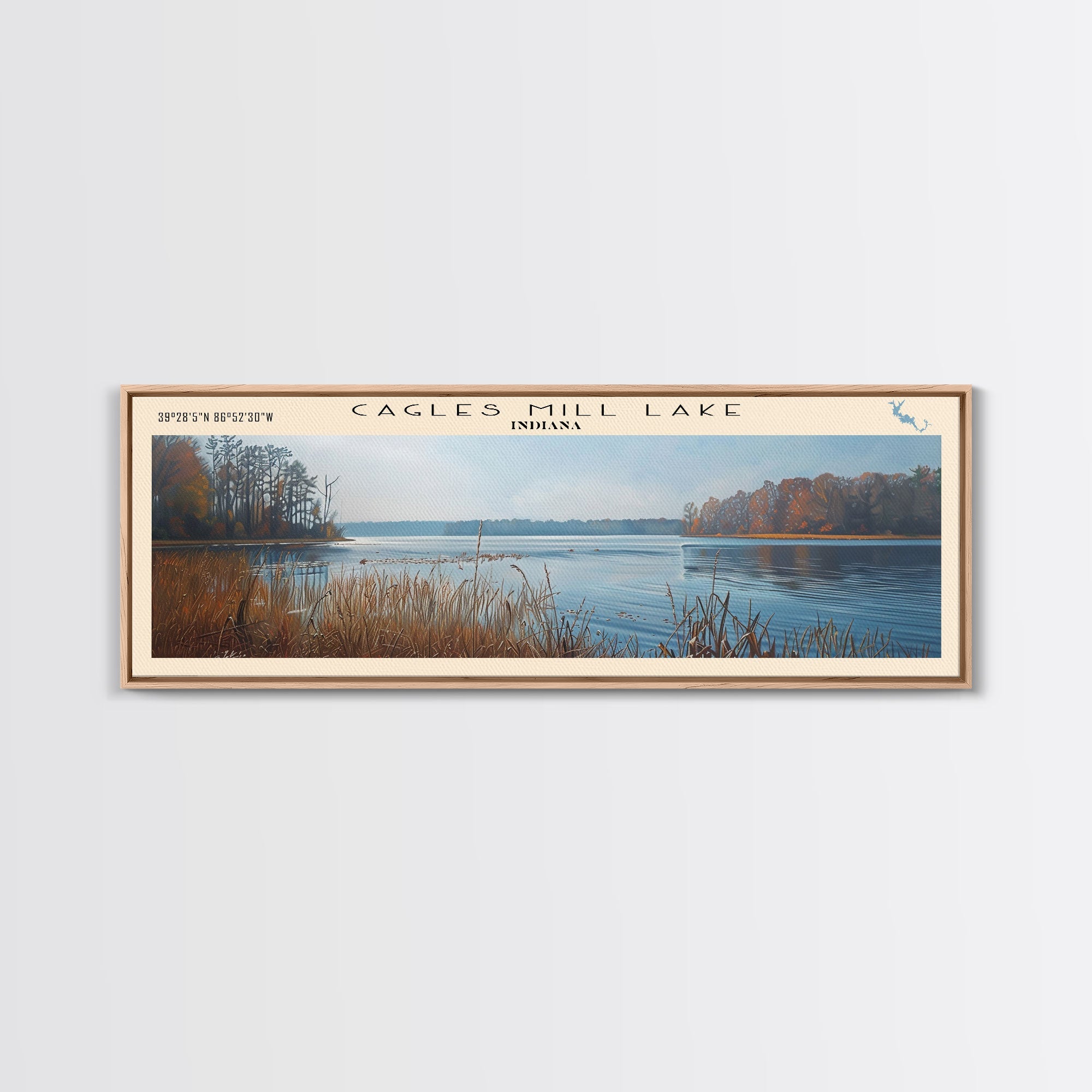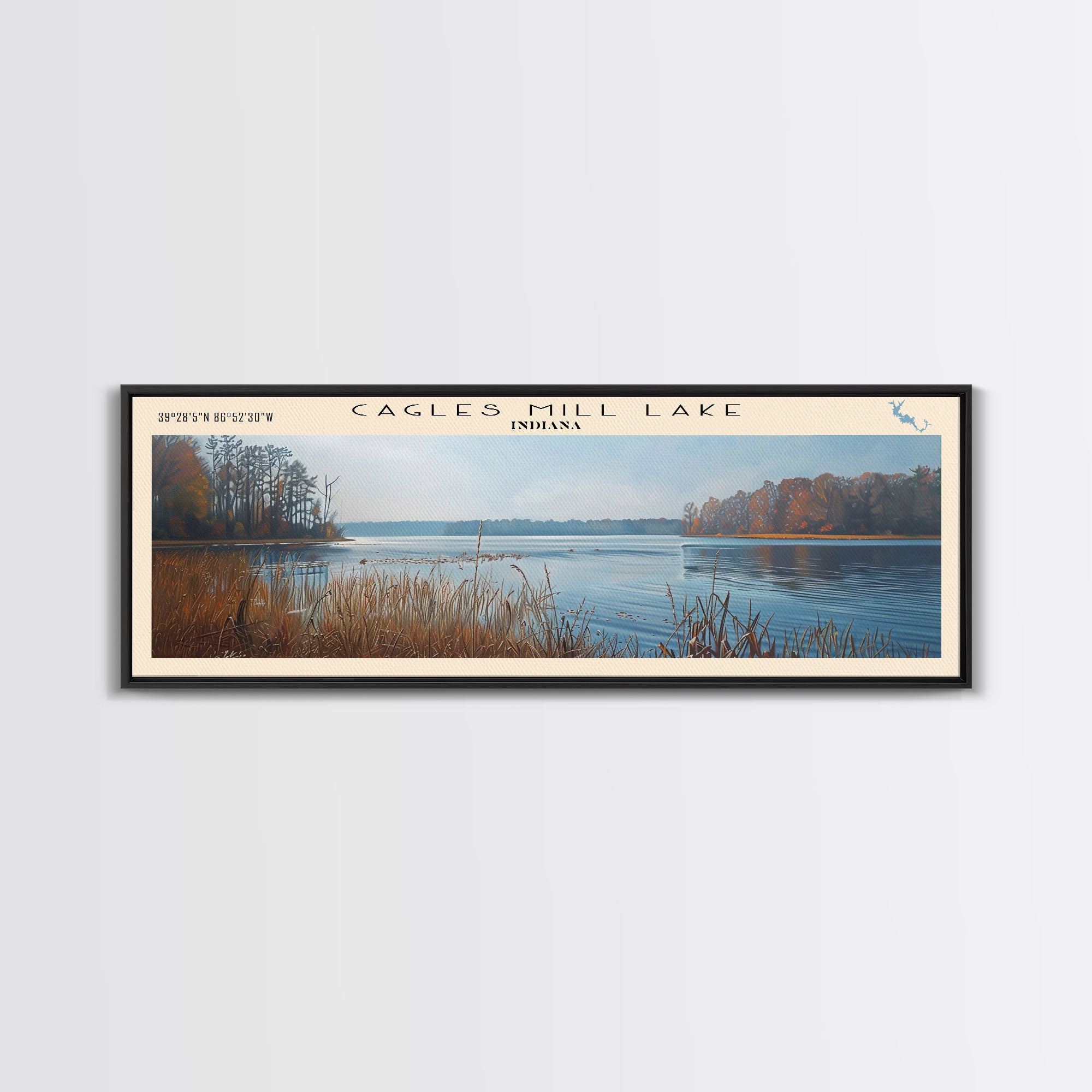 Cagles Mill Lake Indiana Framed Canvas Print, Lake House Art, Panoramic Travel Poster, Wall Art, Modern Lake Painting, Home Decor