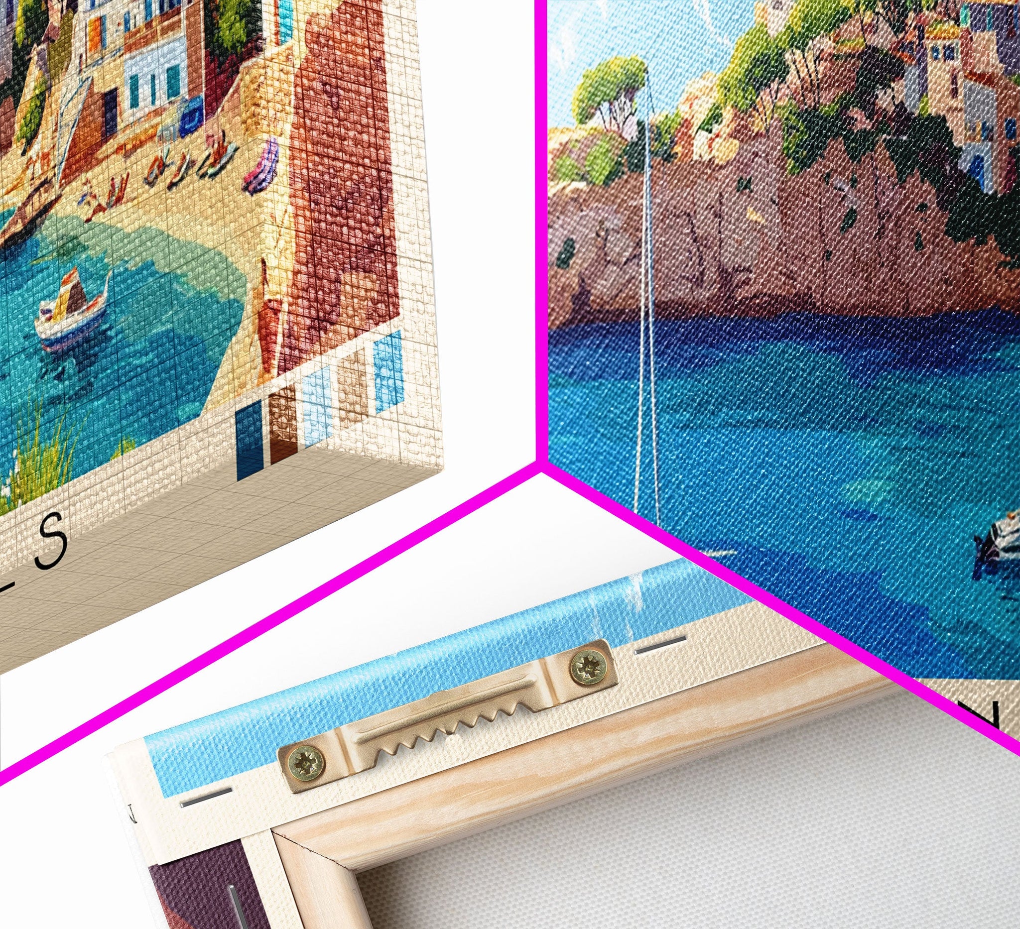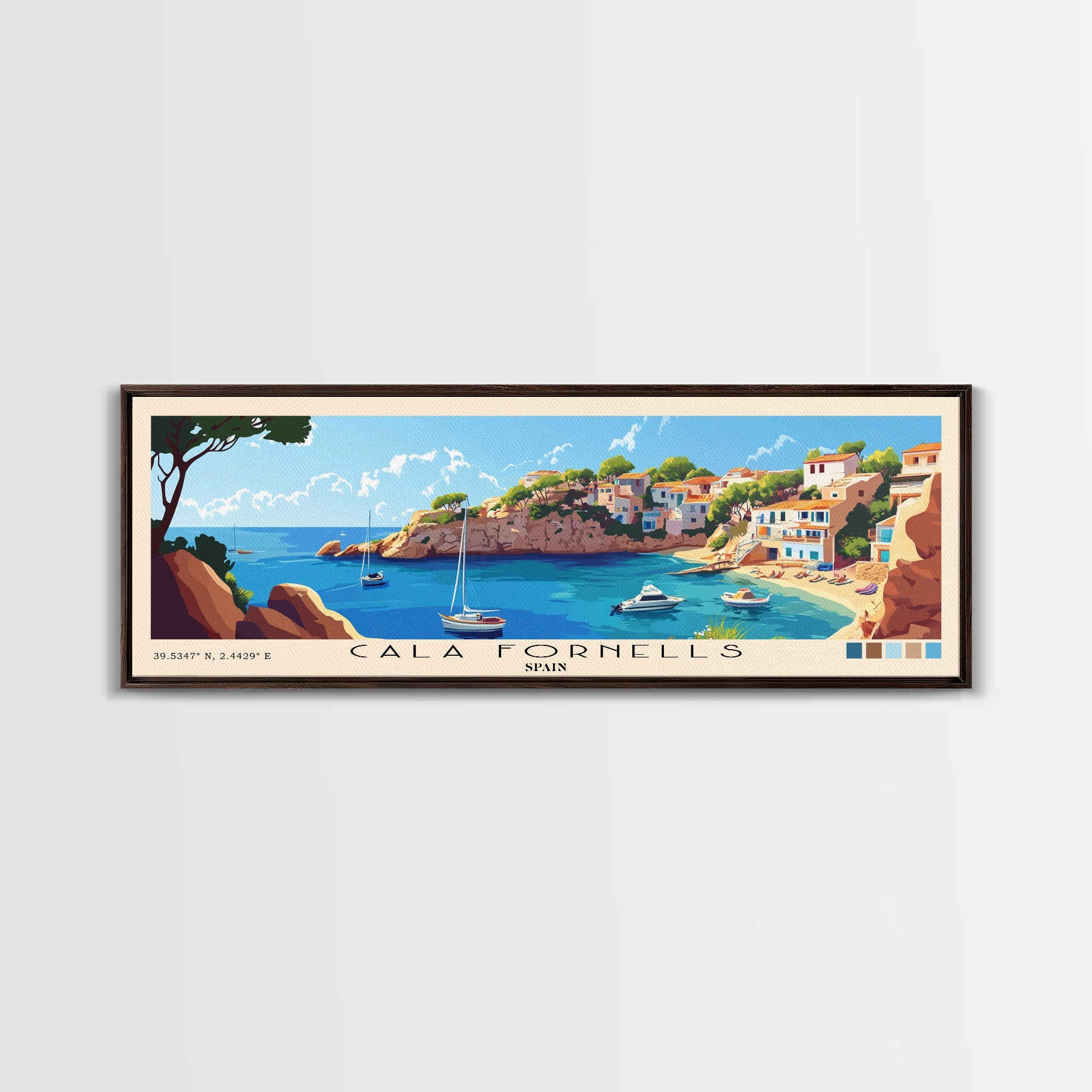 Cala Fornells, Spain Panoramic Beach Print, Vacation Gift, Spain Wall Art, Framed Canvas Print, Framed Beach Painting