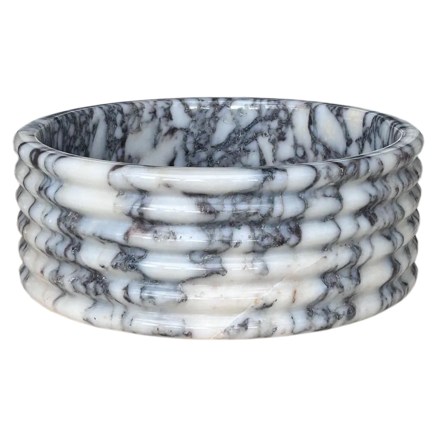 Handcrafted in Turkey, the Calacatta Viola Marble Fluted Above-Vanity Sink is designed for installation above the counter, offering a luxurious centerpiece for any bathroom decor. Custom sizes, shapes, and finishes are available—contact us for the best quality and pricing.