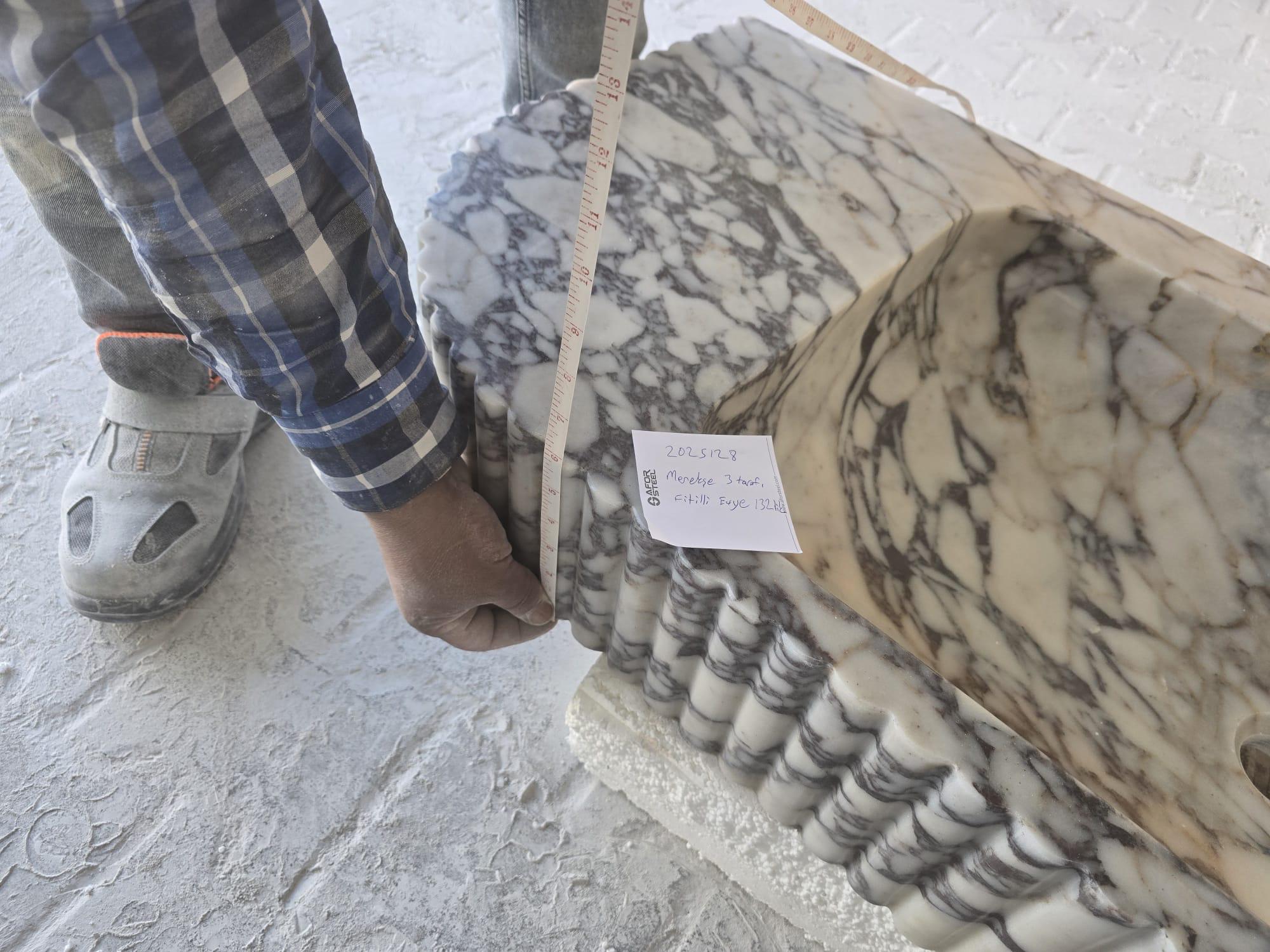 • Hand carved natural marble construction.