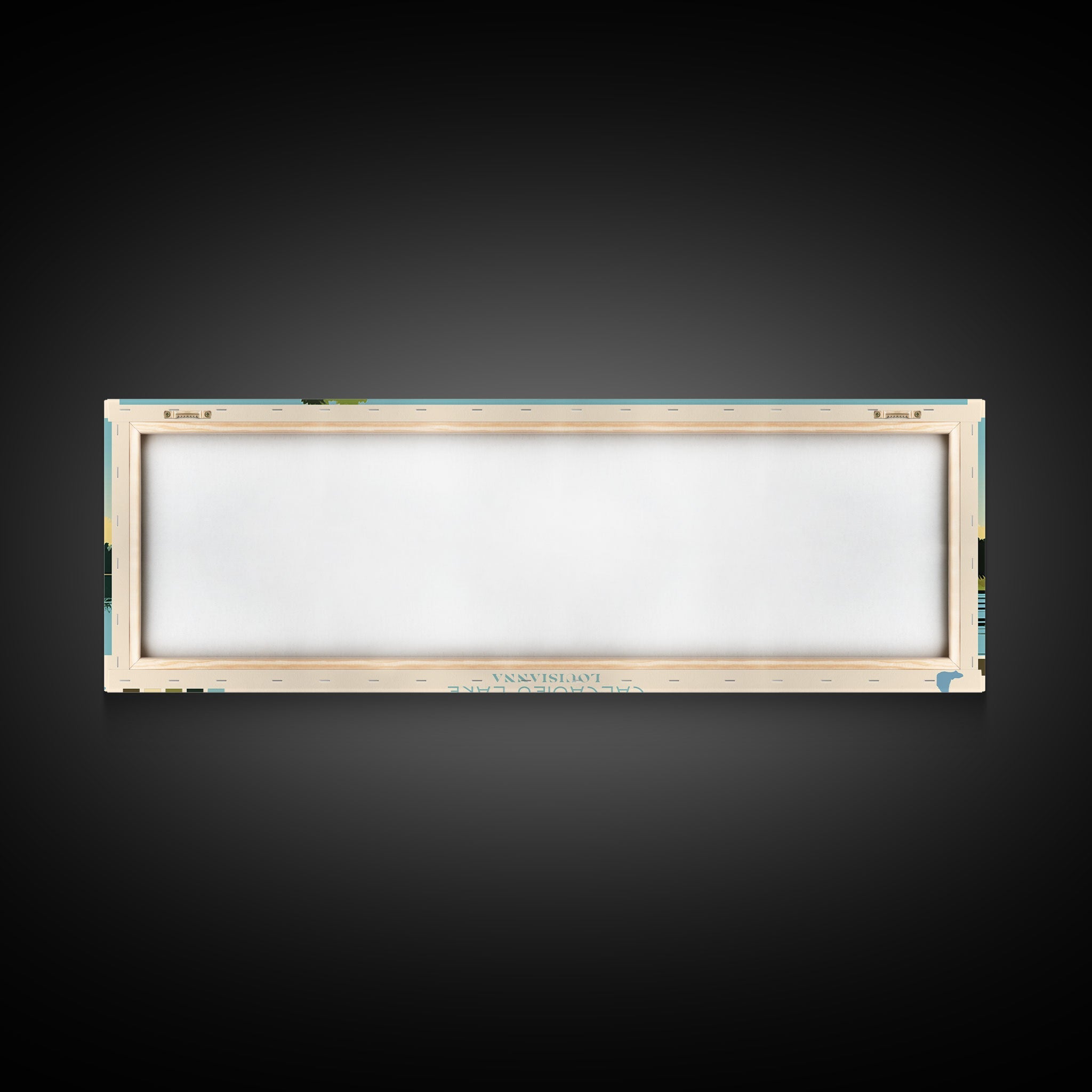 Calcasieu Lake Louisianna Framed Canvas Print, Pop Art Panoramic Travel Poster, Midcentury Modern, Wall Art, Scenic Nature Painting, Bedroom Decor