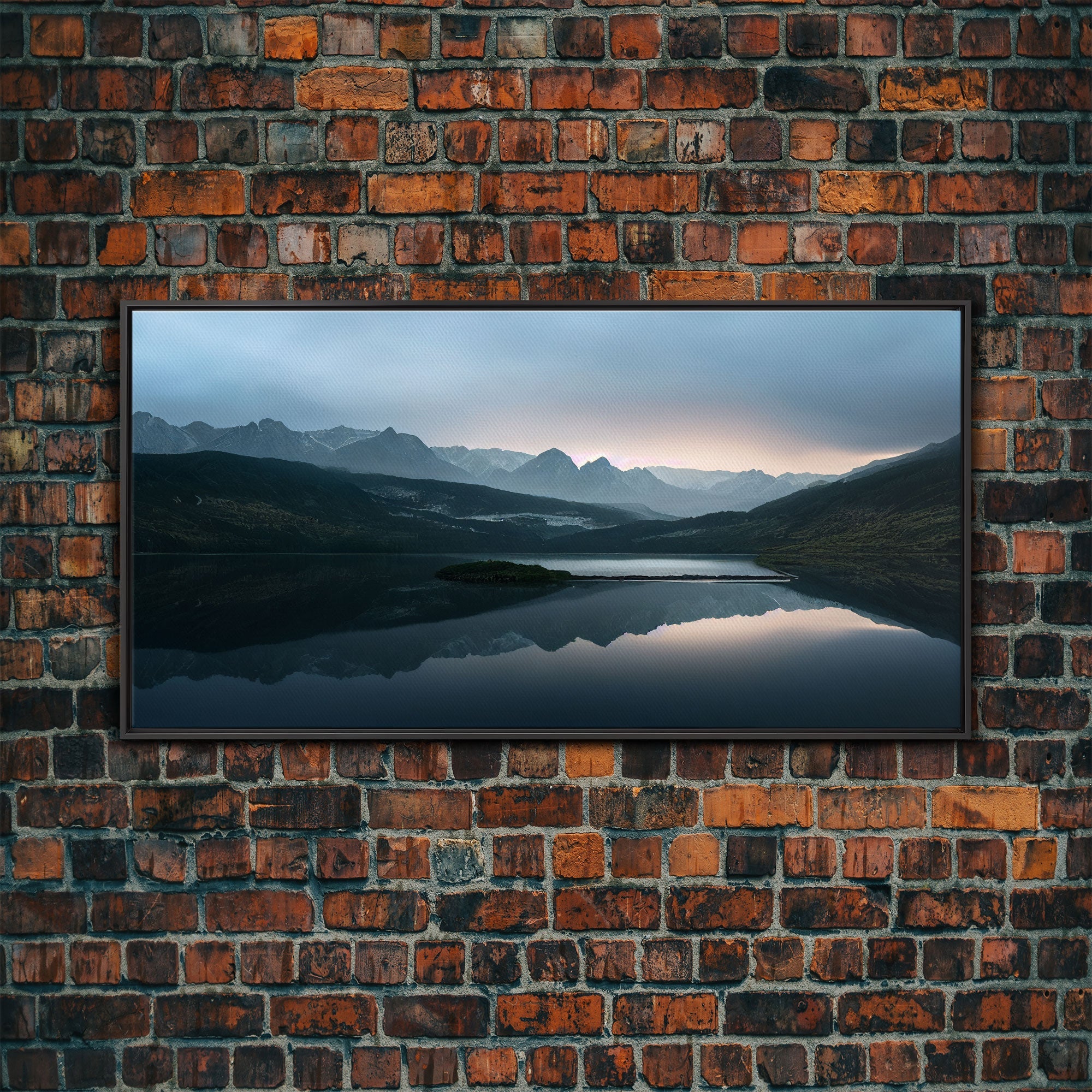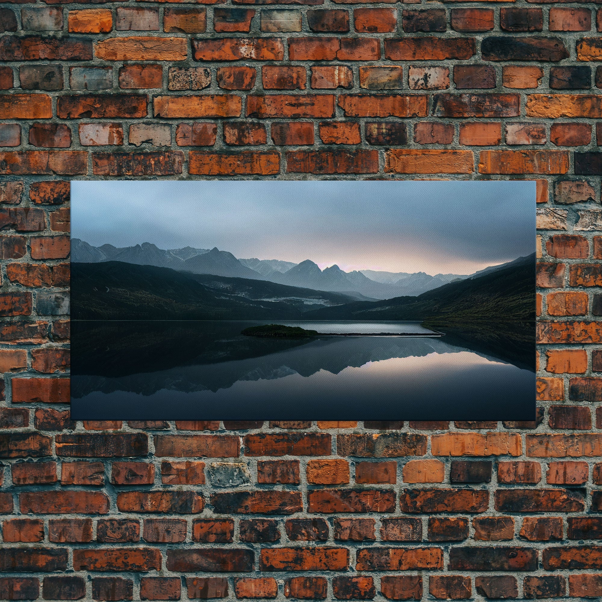 Calm Reflection Of A Lake and Mountains, ready to hang canvas print wall art, Lakehouse Cabin Wall Decor
