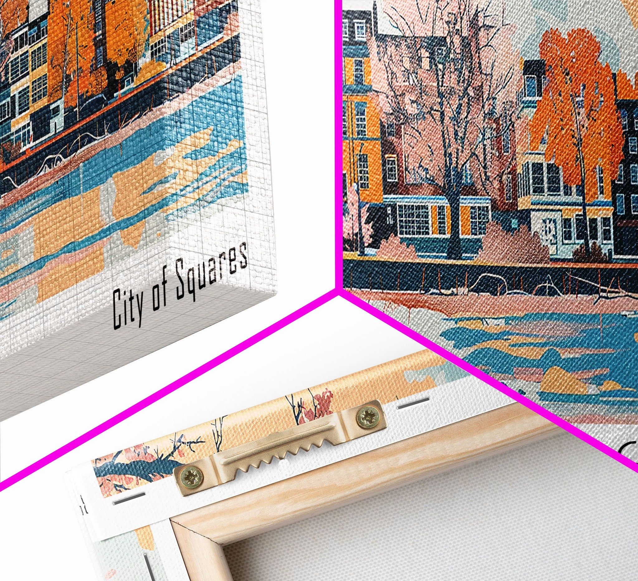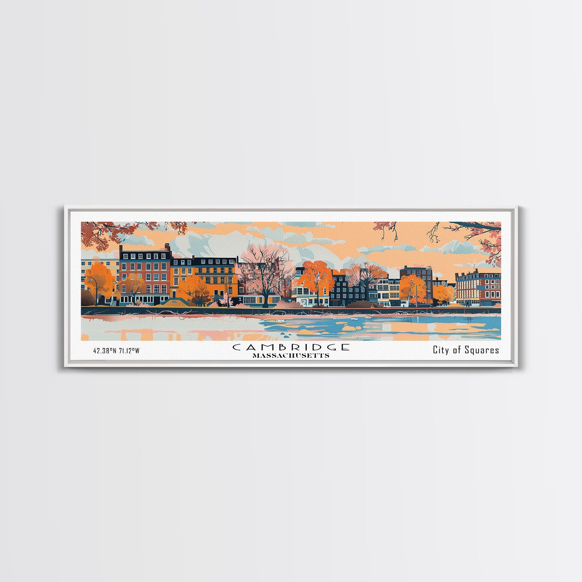 Cambridge Massachusetts Panoramic Painting, Mid Century Modern Framed Canvas Print, Retro Pop Art Travel Poster, Home Decor, City Print