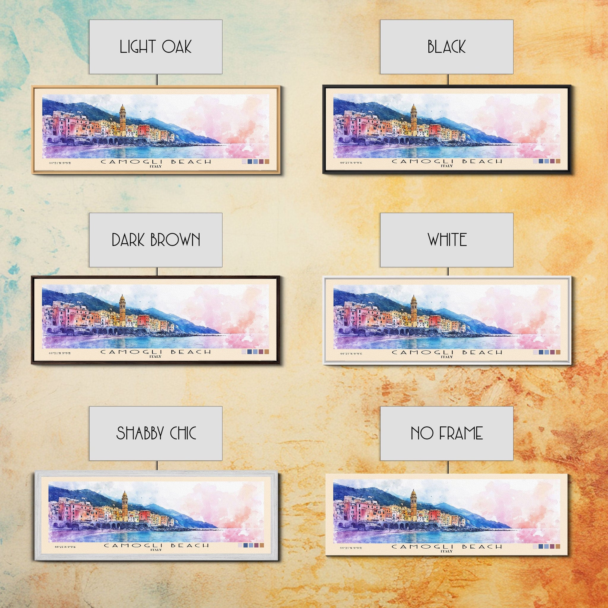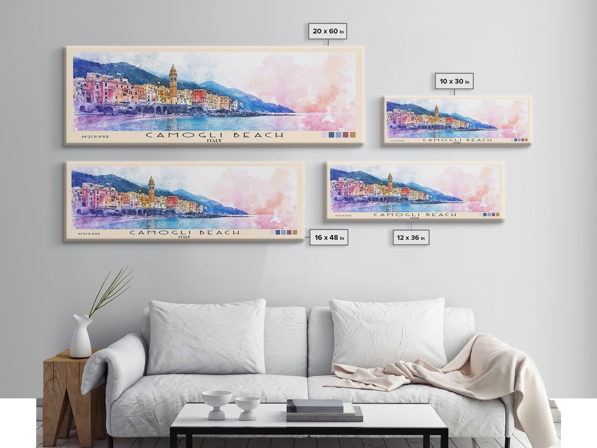Camogli Beach, Italy Watercolor Beach Print, Vacation Gift, Italy Wall Art, Framed Canvas Print, Framed Beach Painting