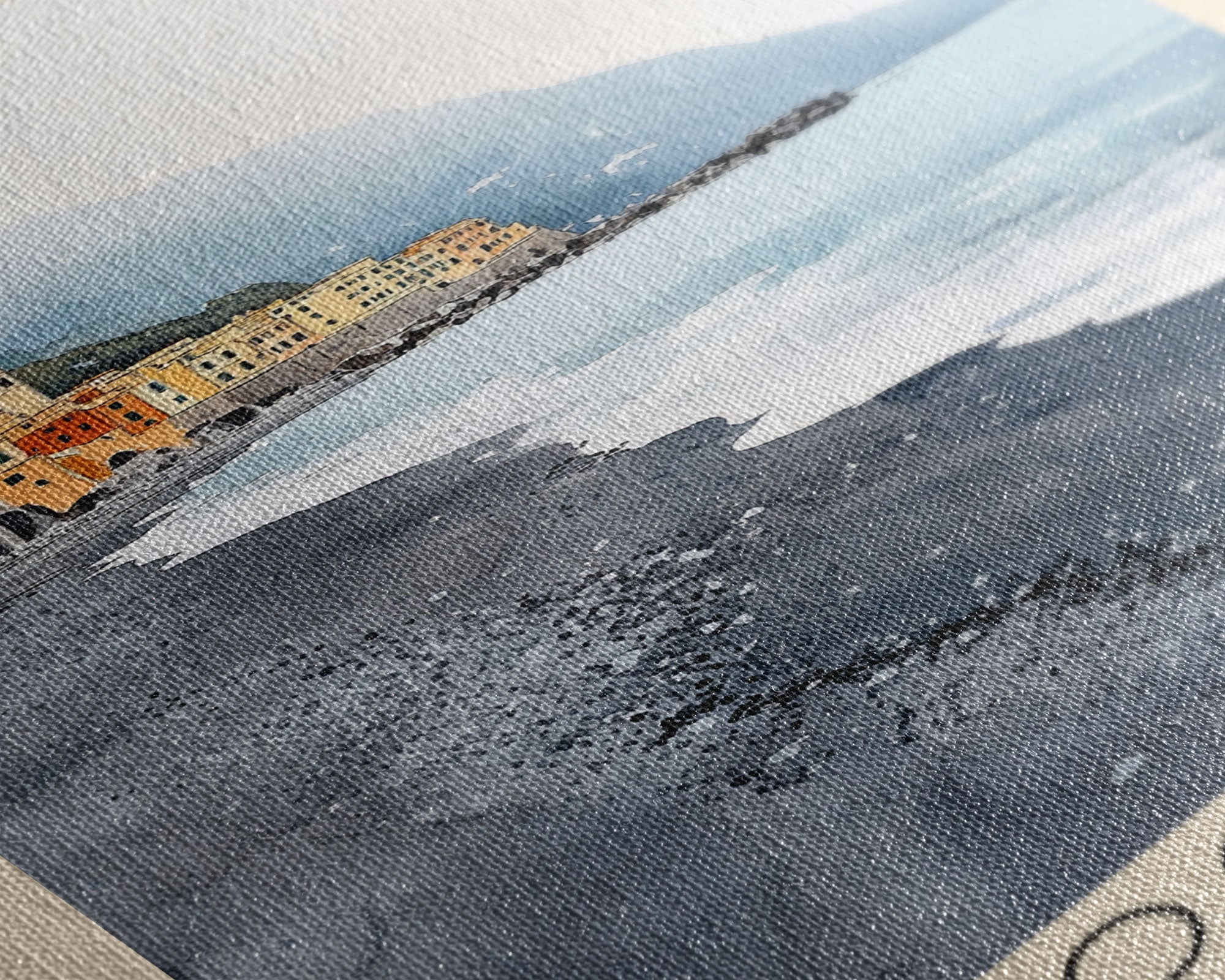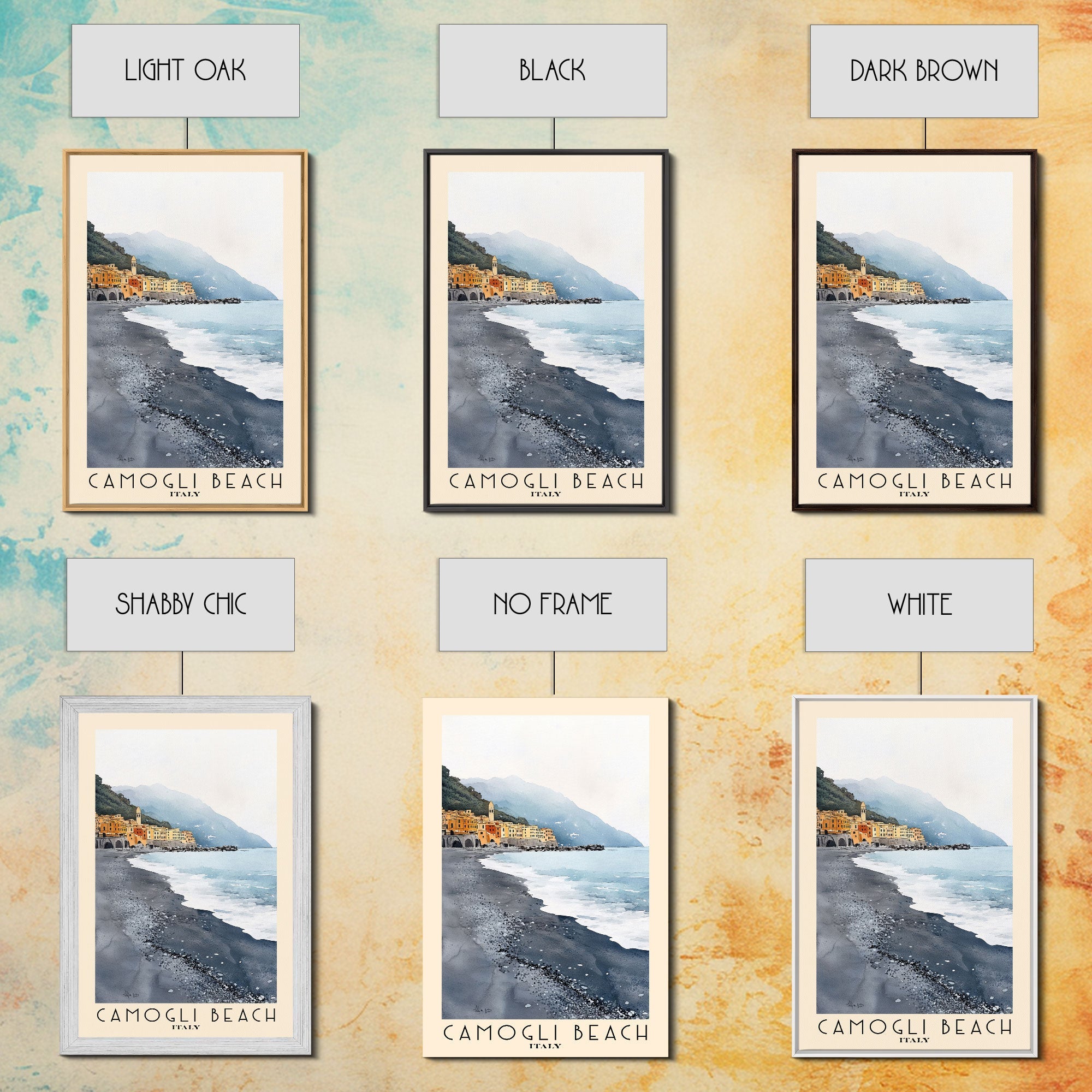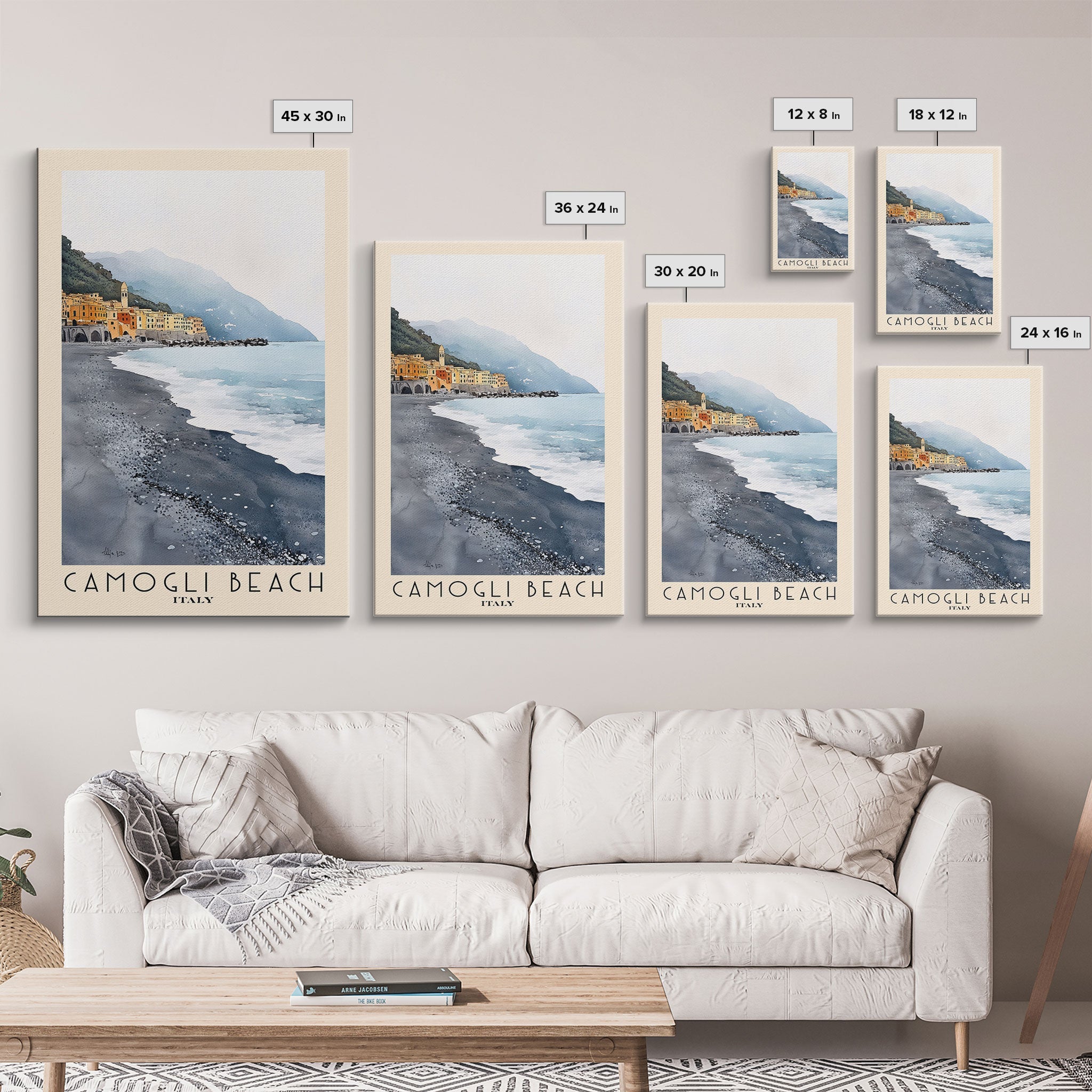 Camogli Beach, Italy Watercolor Beach Print, Vacation Gift, Italy Wall Art, Framed Canvas Print, Framed Beach Painting