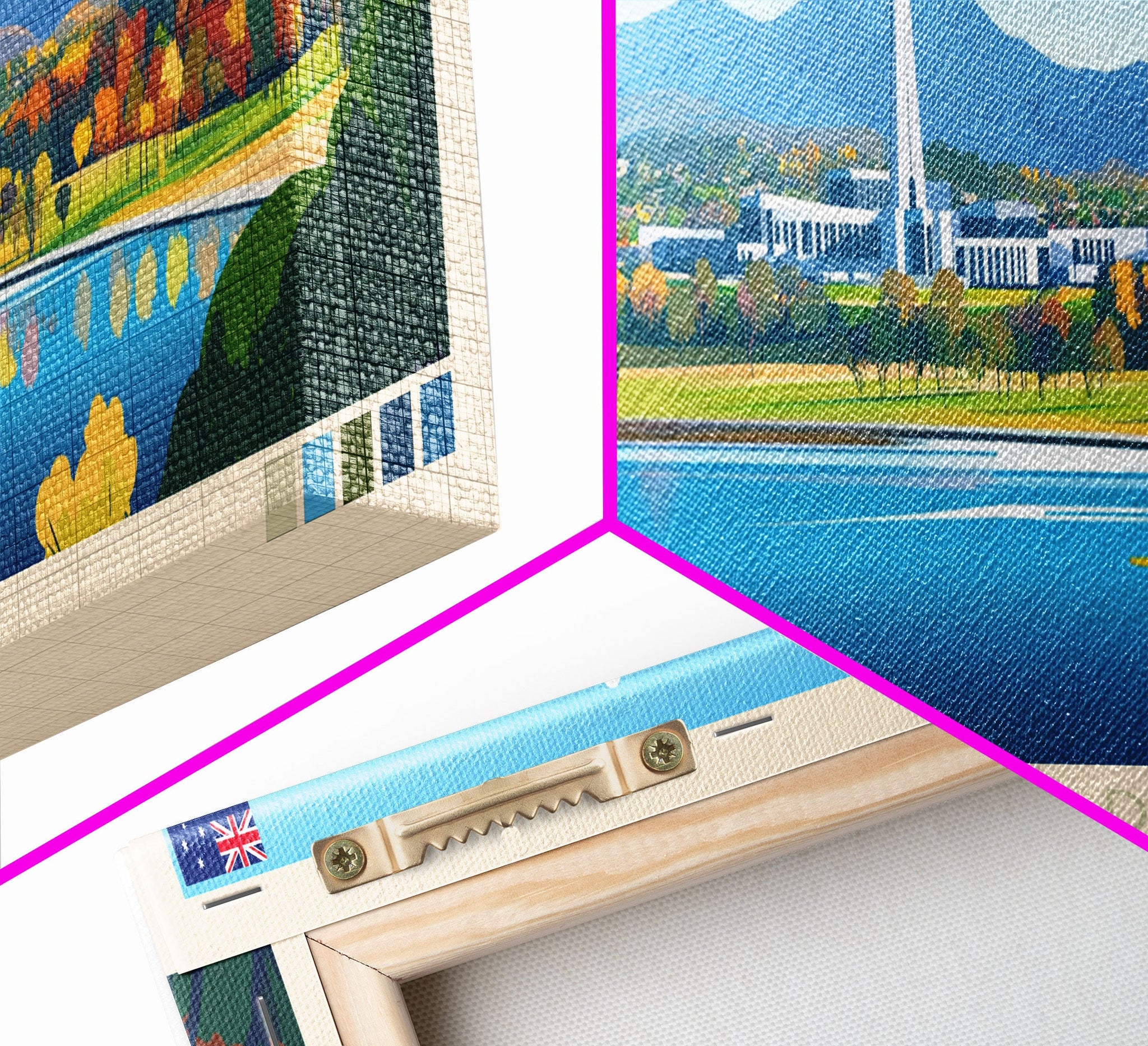 Canberra, Australia Panoramic Travel Poster Canvas Print, Canberra, Australia Painting, Australia Art, Canberra Travel Art, Guest Room Painting