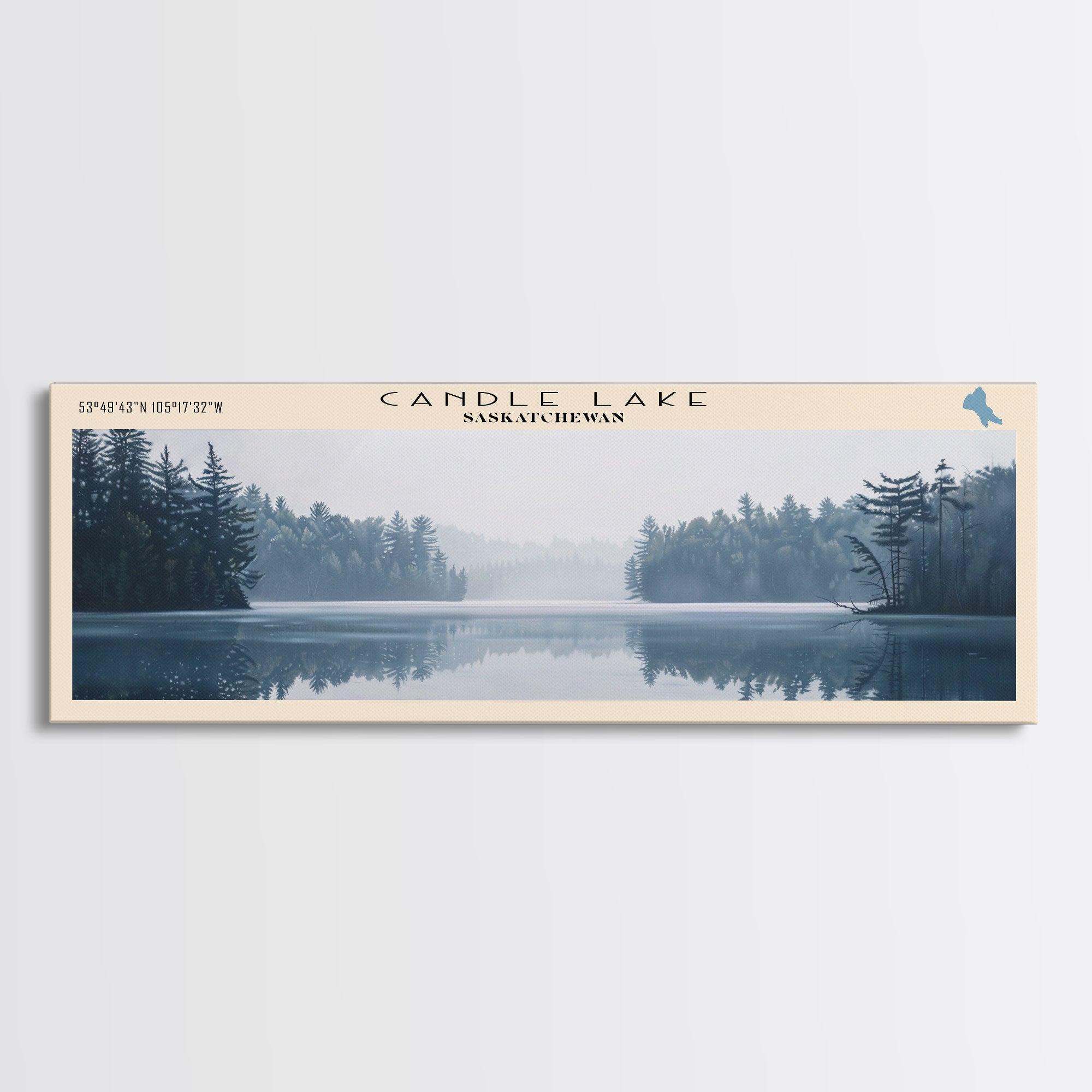 Candle Lake Framed Canvas Print, Panoramic Lake House Decor, Wall Art, Travel Poster, Rustic Lake Painting, Home Decor