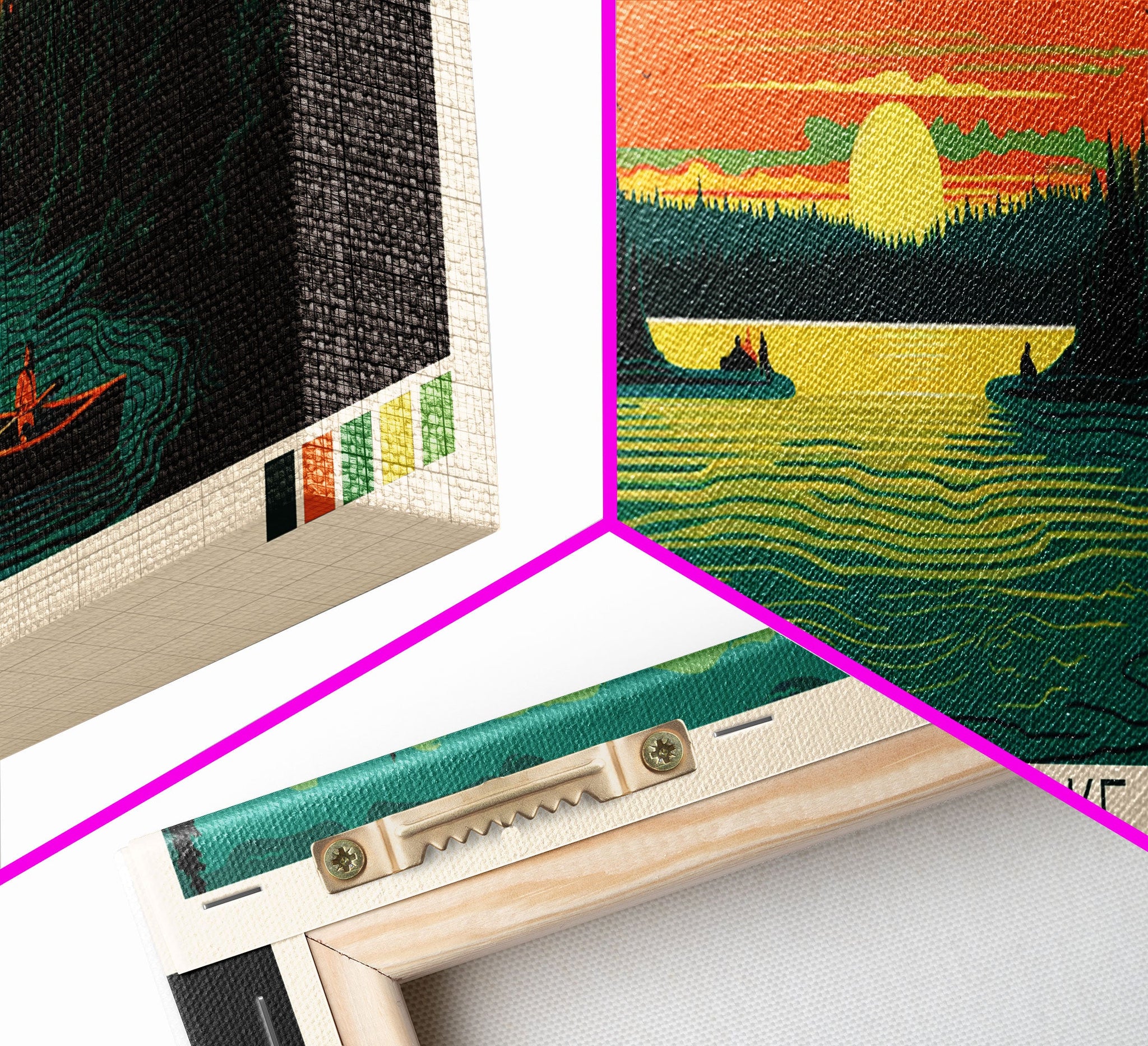 • Carregar imagem no visualizador da galeria, Candle Lake Saskatchewan Framed Canvas Print, Midcentury Modern Panoramic Wall Art, Living Room Decor, Pop Art, Travel Poster Art, Scenic Nature Painting