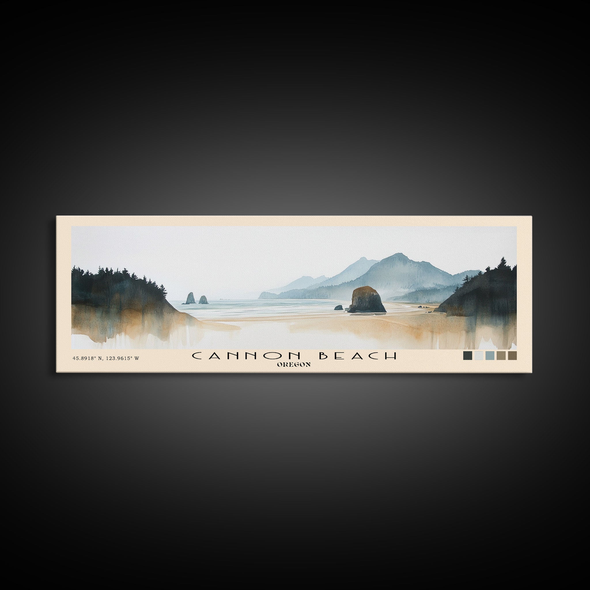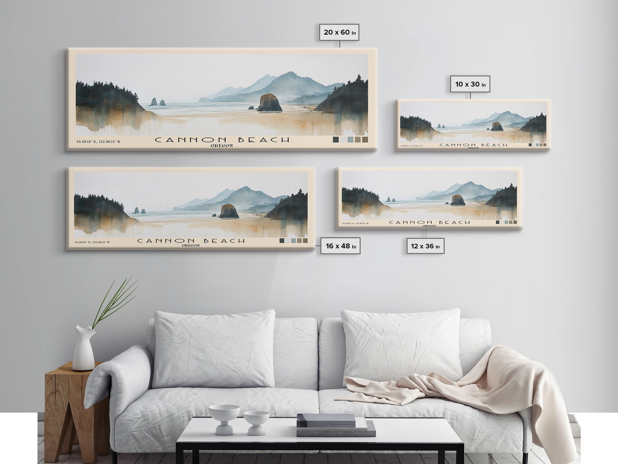 Cannon Beach, Oregon Watercolor Beach Print, Vacation Gift, Oregon Wall Art, Framed Canvas Print, Framed Beach Painting