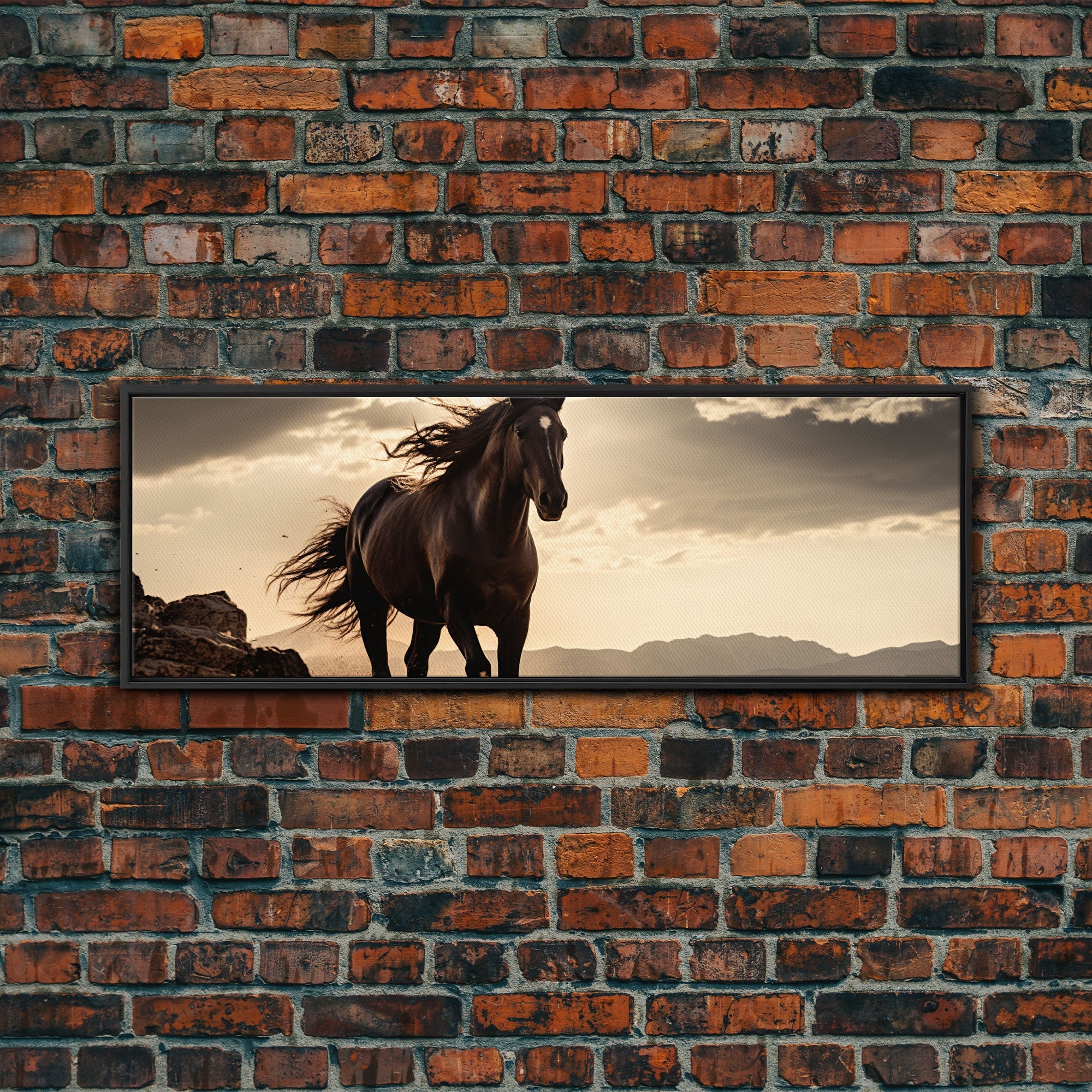 Canvas Wall Art, Horse Photography Print, Framed Canvas Print, Horse Wall Decor, Panoramic Wall Art, Large Wall Art, Rustic Decor
