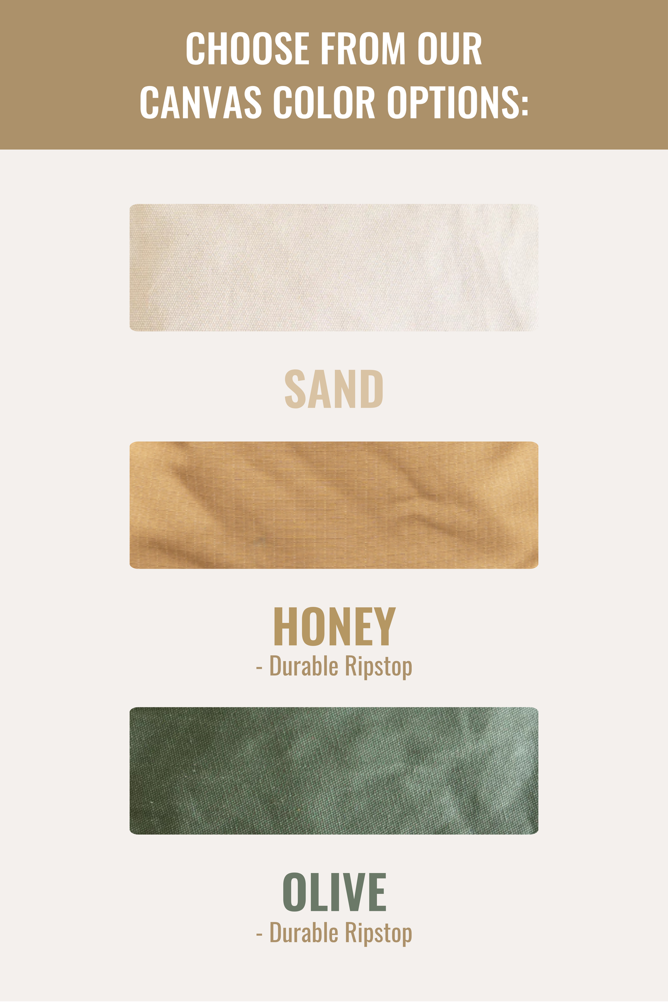 Available in our Savannah Tan Ripstop and Safari Green Ripstop.