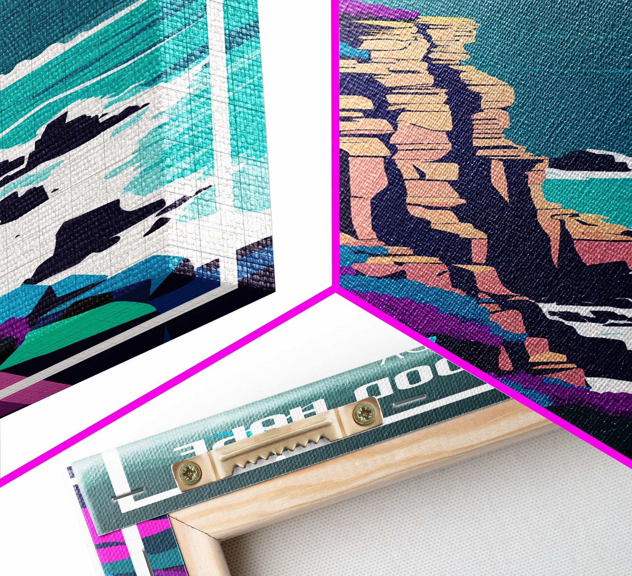 Hello and thank you for taking the time to view our modern high quality giclée artwork! We offer both posters and stretched canvas prints. Our posters are printed on Ultra Matte 60 lb / 230 GSM high quality photo paper, with a thickness of 10 mil. Our canvases are printed on museum grade 350 GSM canvas material with ECO friendly archival grade ink, then hand stretched and stapled over premium, FSC certified and shrink resistant frames. Designed and built to last a lifetime.