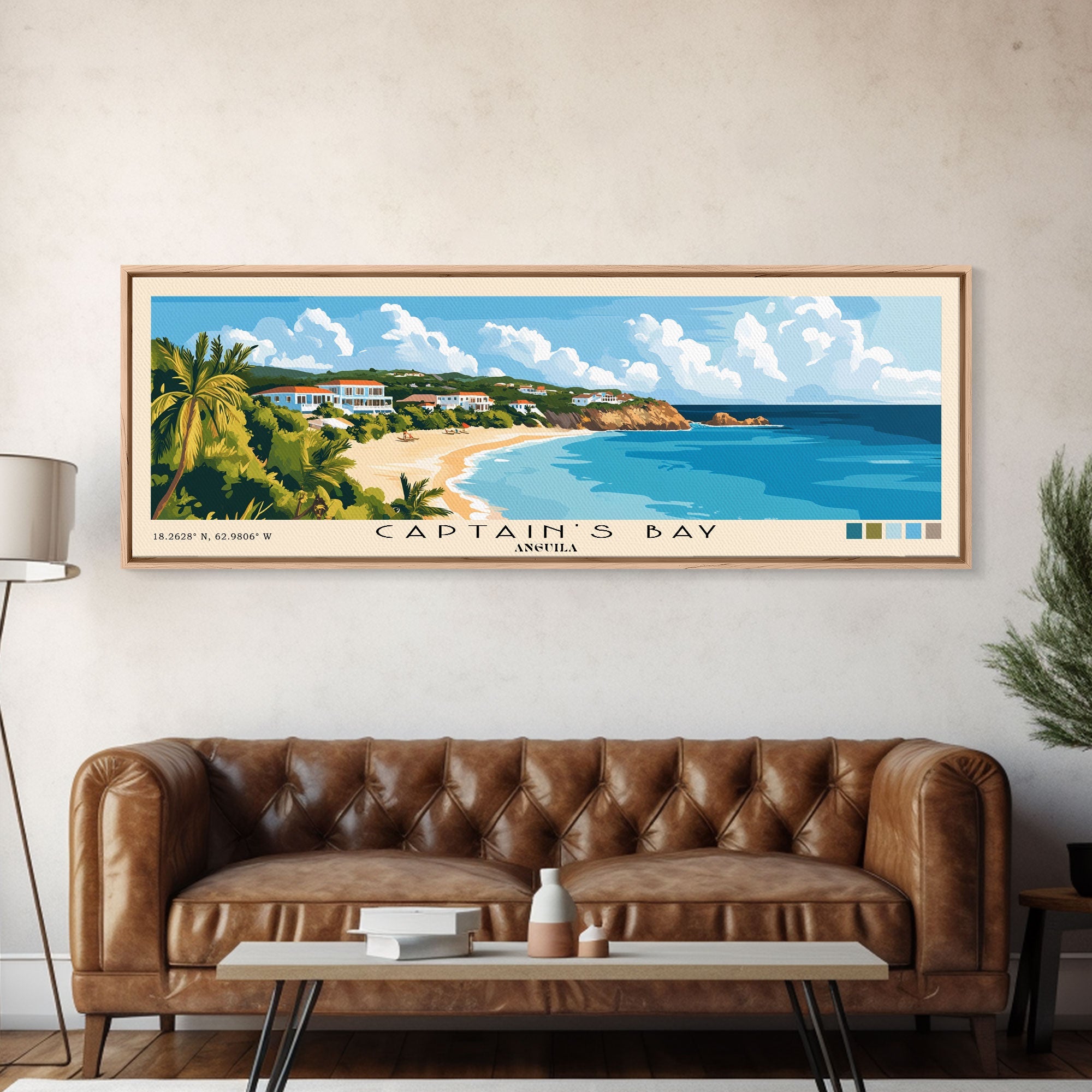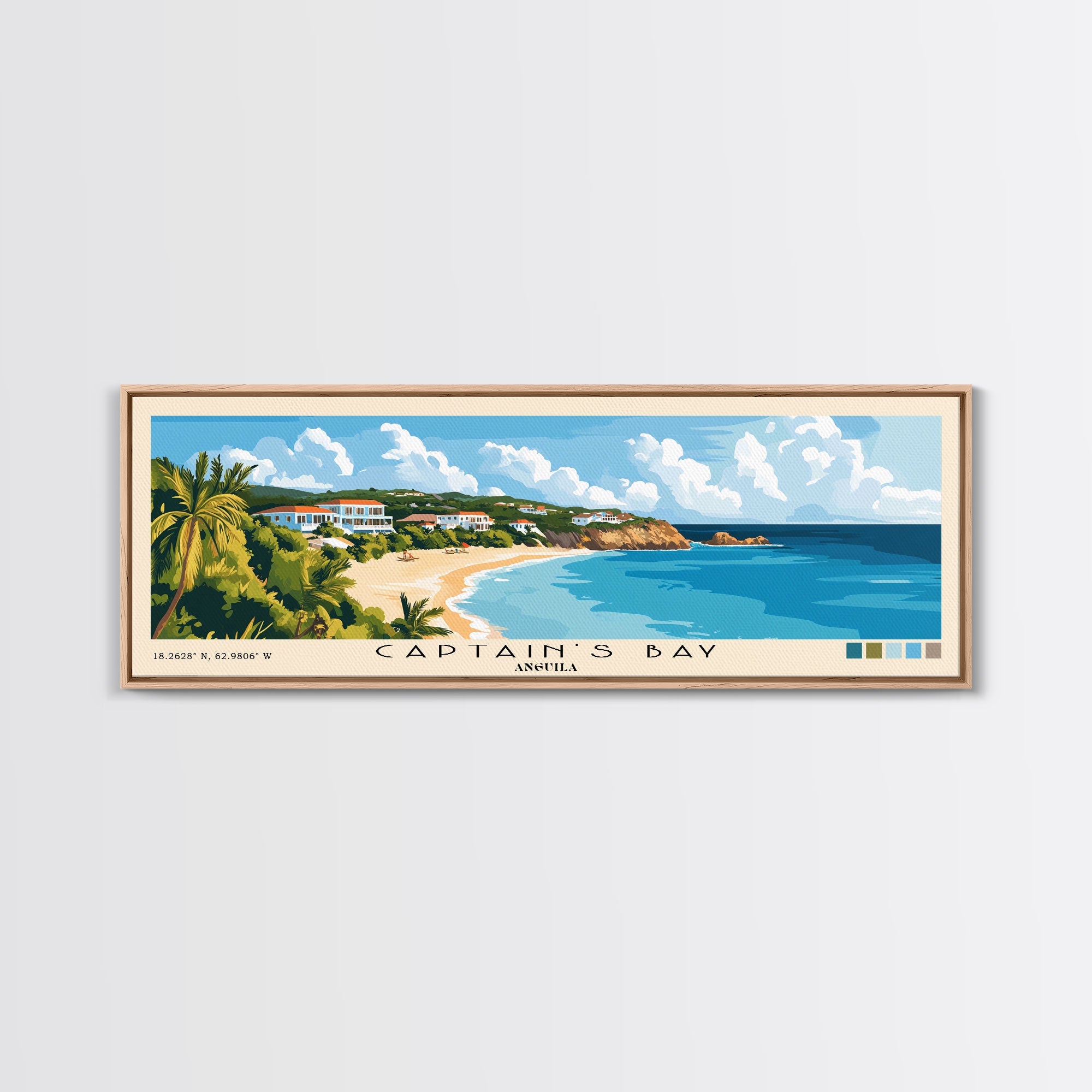Captain's Bay, Anguila Panoramic Print, Vacation Gift, Anguila Wall Art, Beach Painting, Beach Decor, Beach Or Lakehouse Art