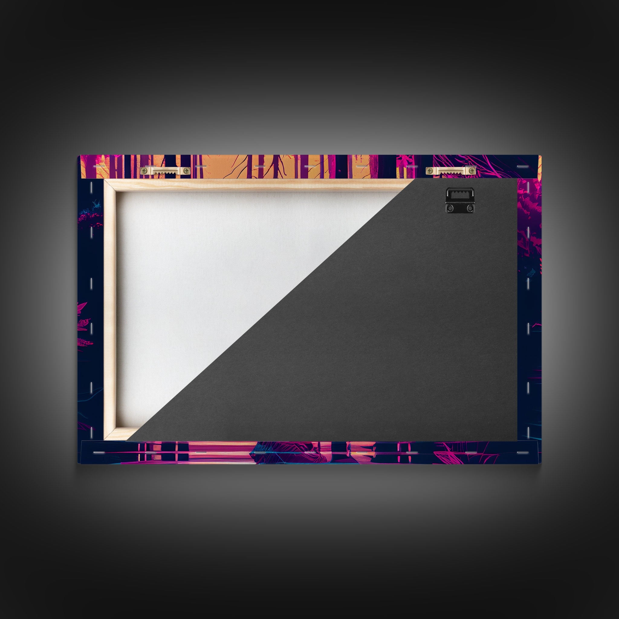 Cute beaver in a river, pink vaporwave art, animal  prints, framed canvas print, framed wall art