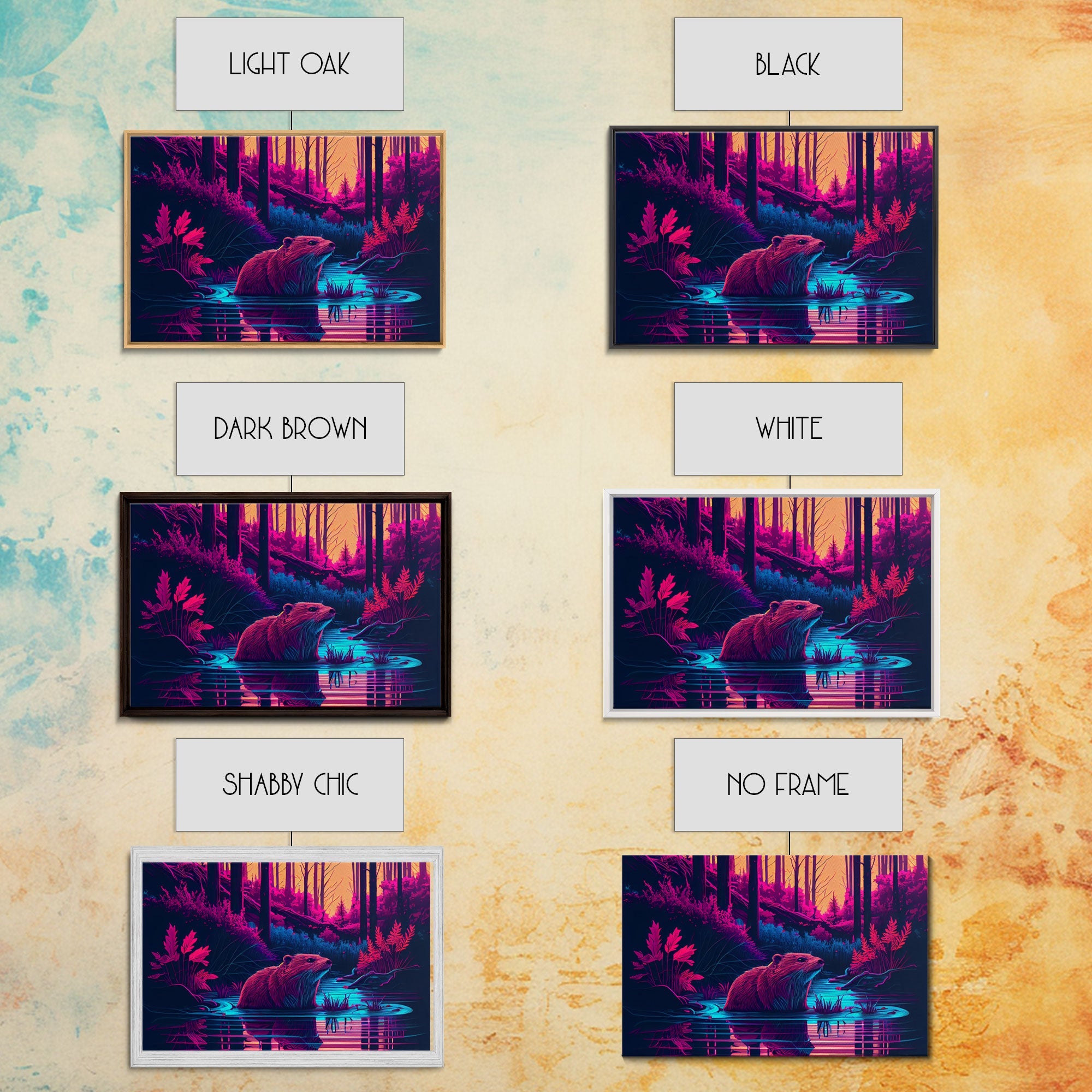 • Carregar imagem no visualizador da galeria, Cute beaver in a river, pink vaporwave art, animal  prints, framed canvas print, framed wall art