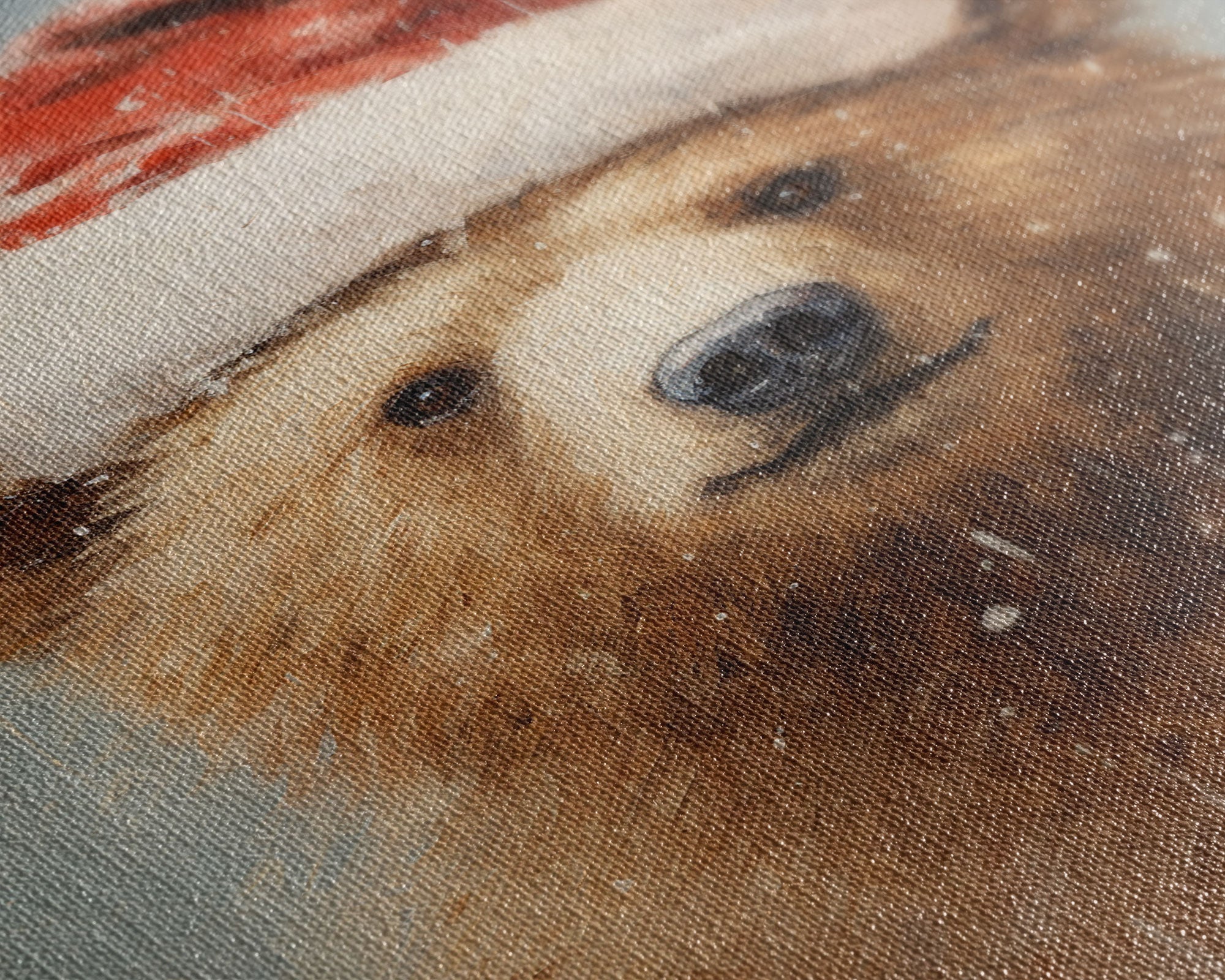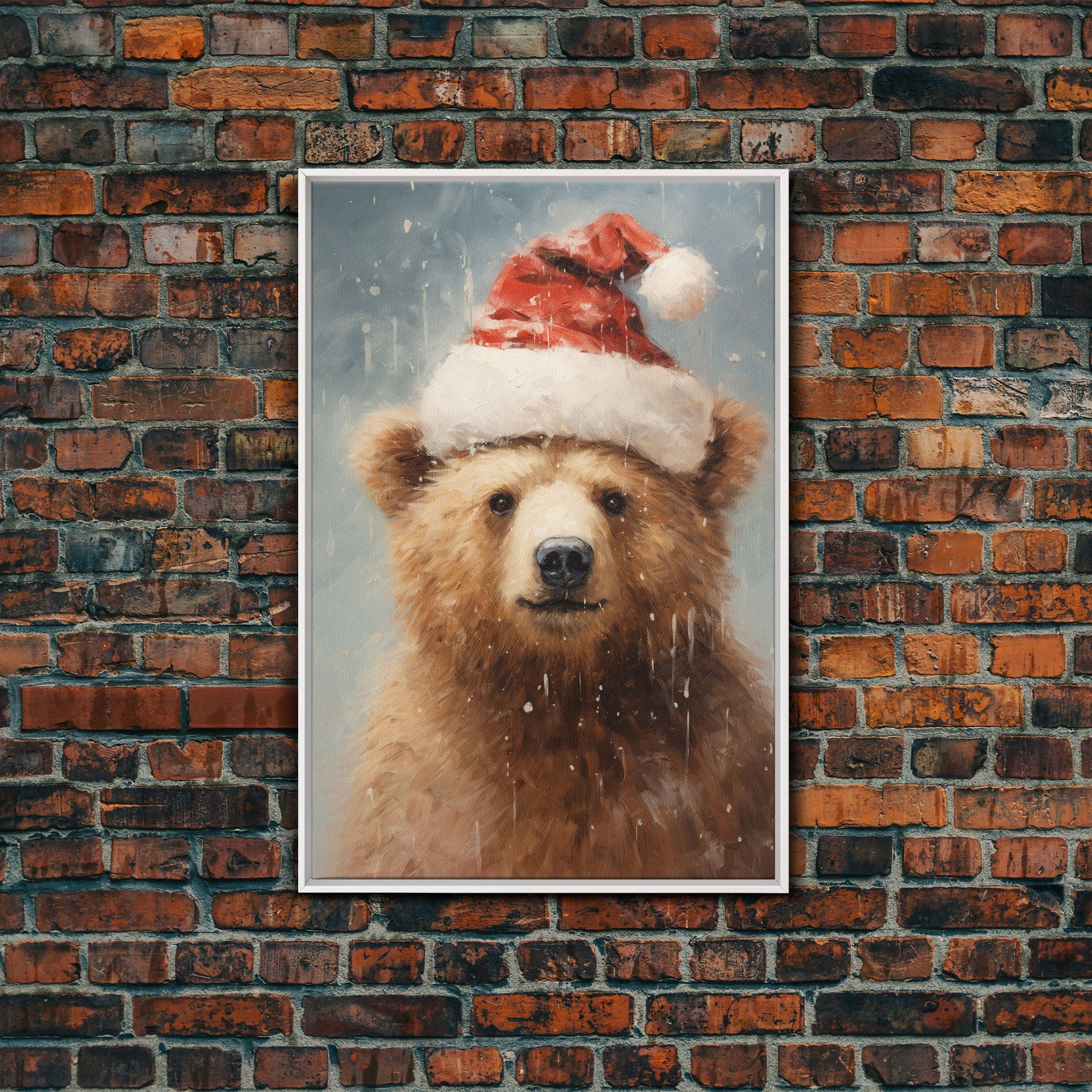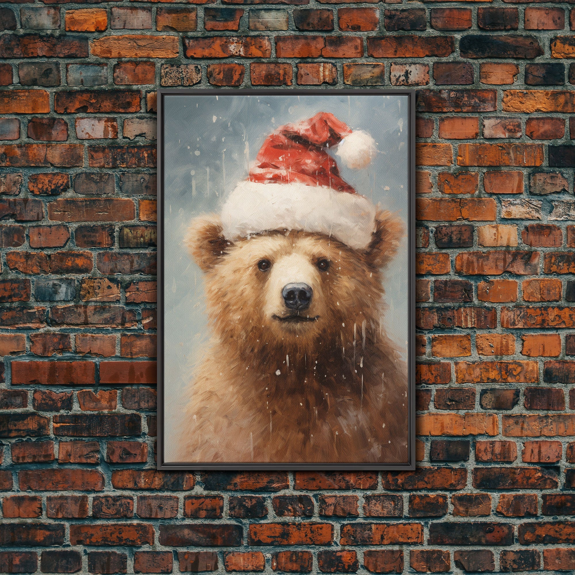 Cute Christmas Bear In A Santa Hat, Framed Canvas Print, Christmas Art, Christmas Decor, Christmas Art Print, Christmas Wall Art