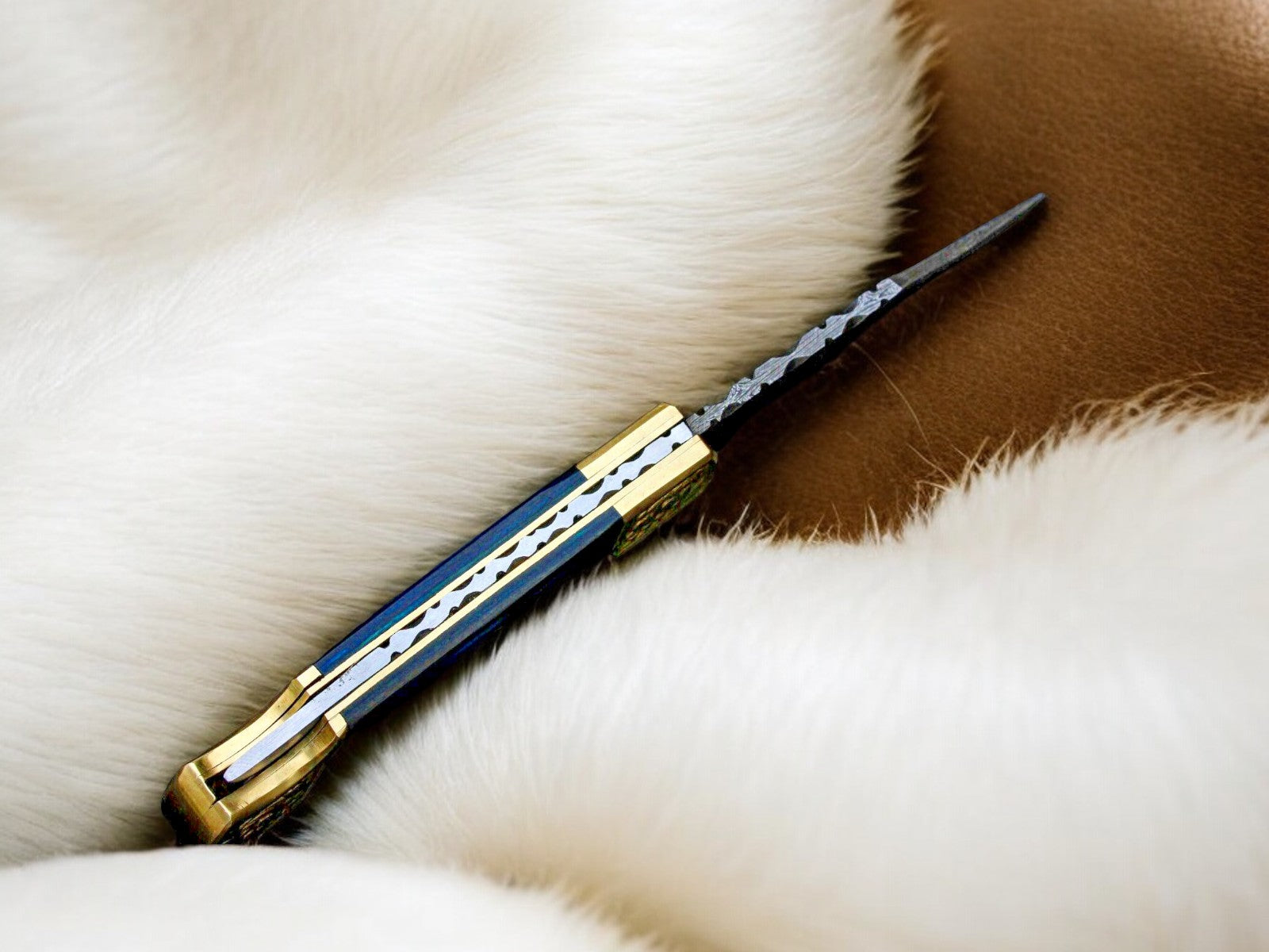 Discover the perfect blend of craftsmanship and functionality with this custom handmade Damascus steel pocket knife. Featuring a 3-inch razor-sharp blade and an exotic blue-colored wood handle, this knife offers durability and style. The back lock mechanism ensures secure handling, while the included leather case provides safe storage.