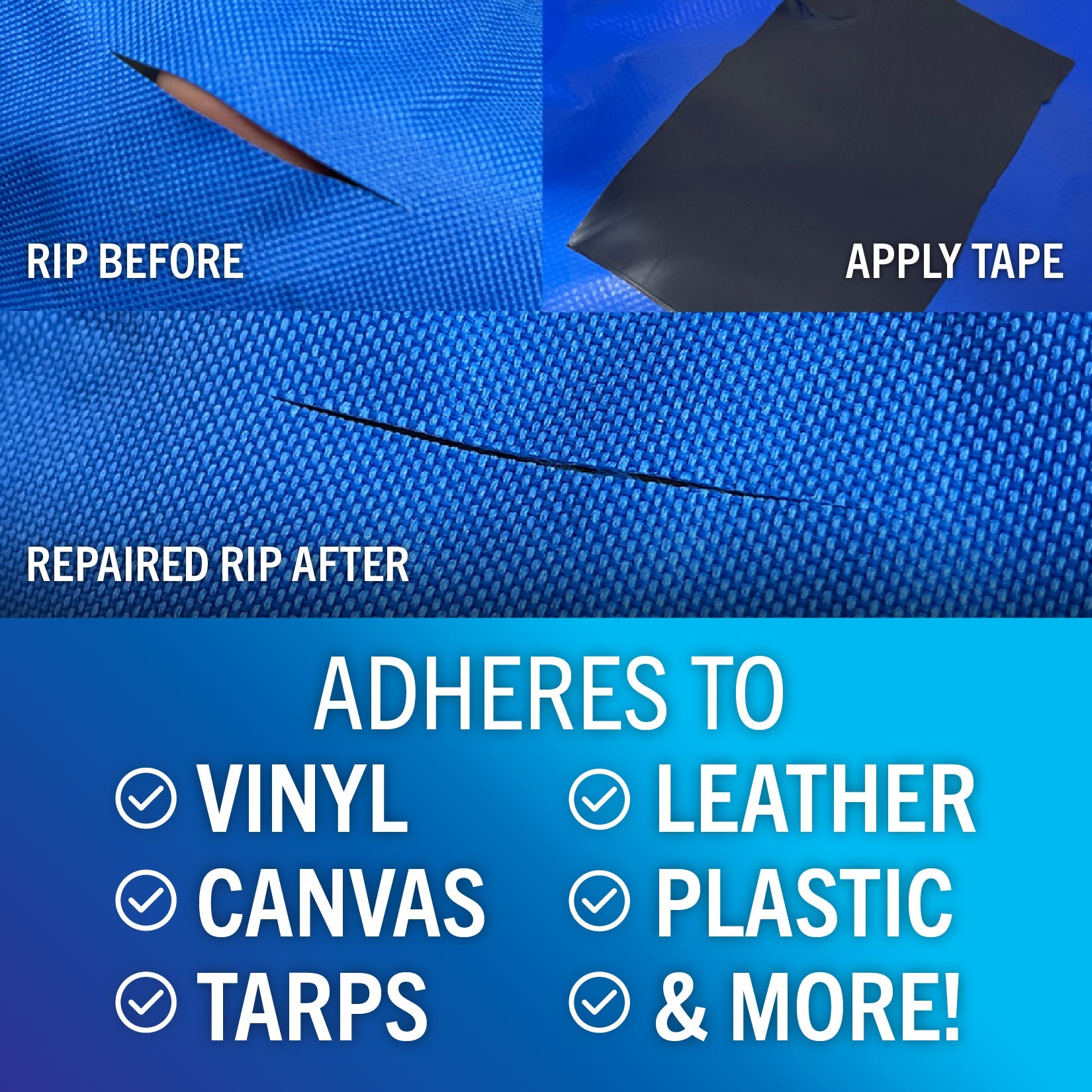 - Repairs Rips In Awnings, Sails & More: All-purpose, heavy duty canvas and fabric repair tape that works great to fix a variety of items around your home, boat or camp site.