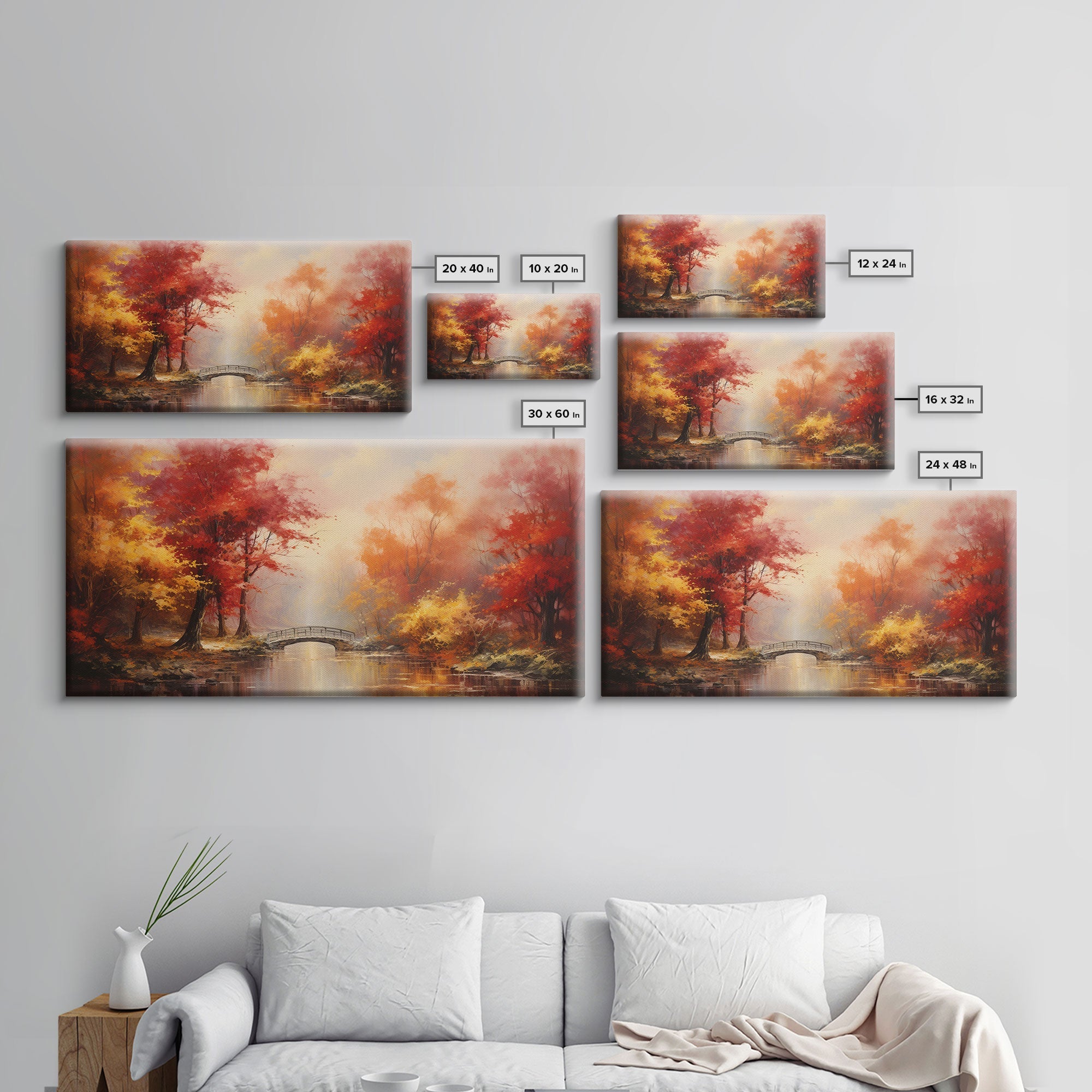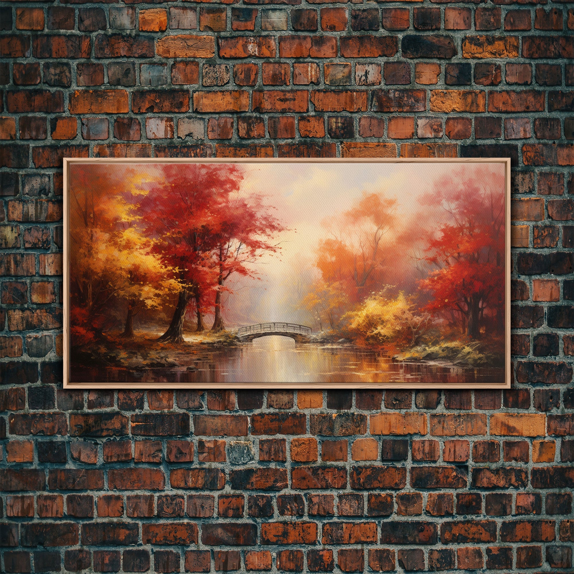 Fall Centerpiece, Beautiful Forest In Early Autumn, Landscape Framed Canvas Print Painting, Wall Art, Wall Decor, Autumn Decor, Farmhouse