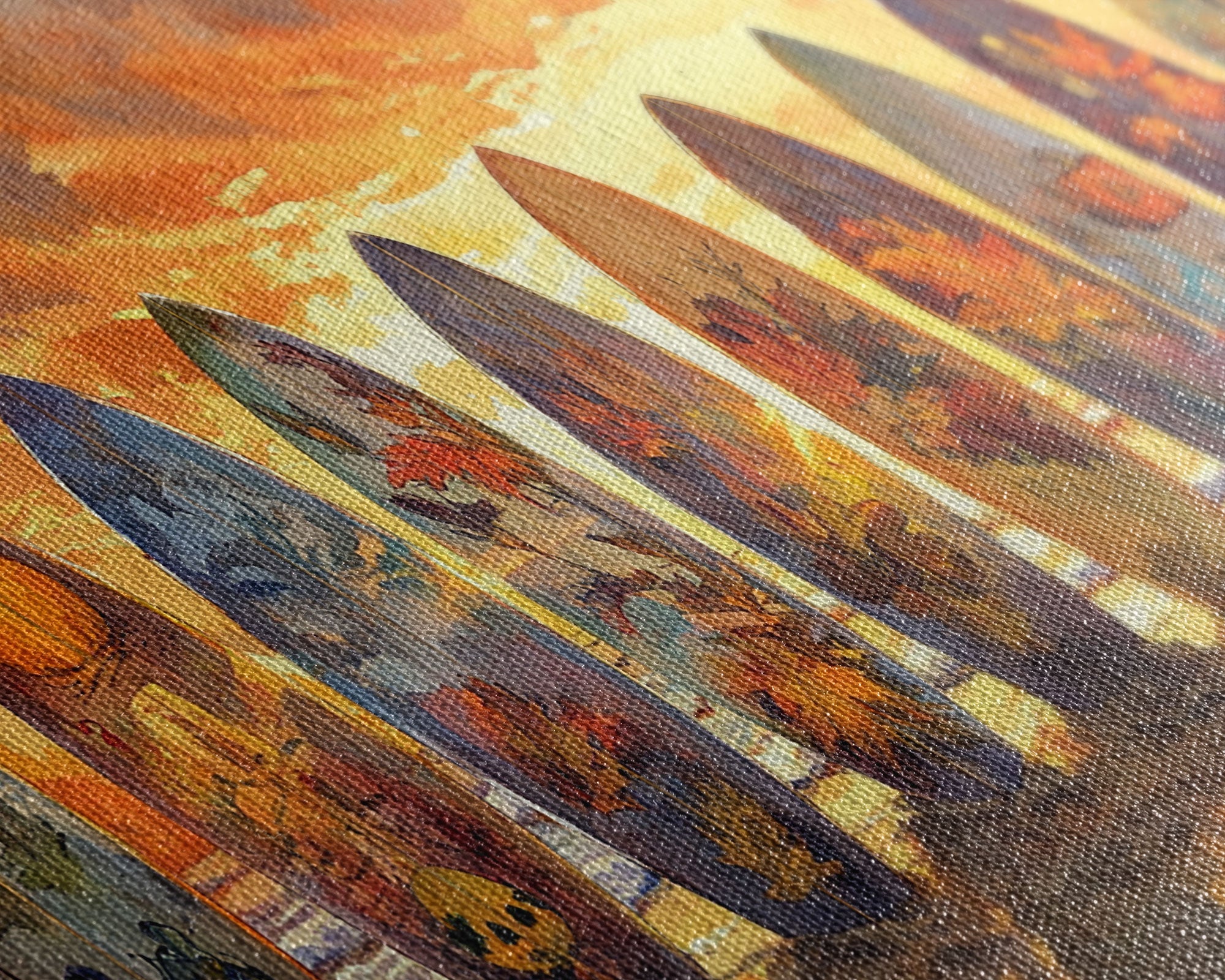 Most of our canvases are made in the USA, with the exception of canvases ordered with the light oak unstained frames, and any large canvases (24x48, 30x60, 16x48 and 20x60) ordered WITH a frame. These are temporarily made in and shipped from Europe, while we try to find a more consistent supplier in the USA.