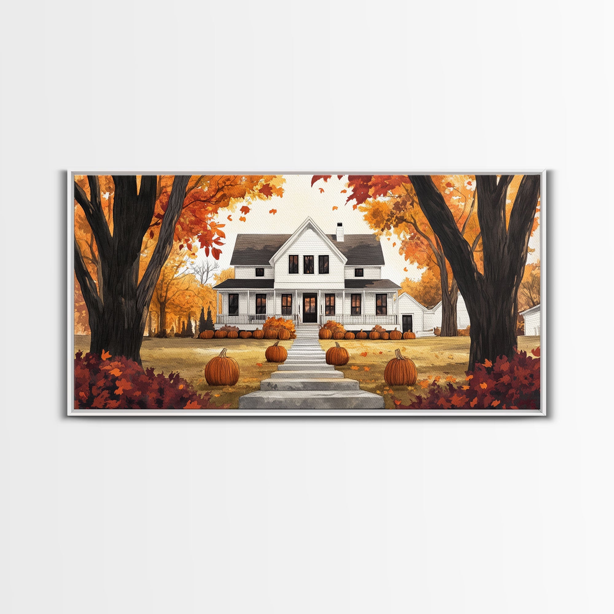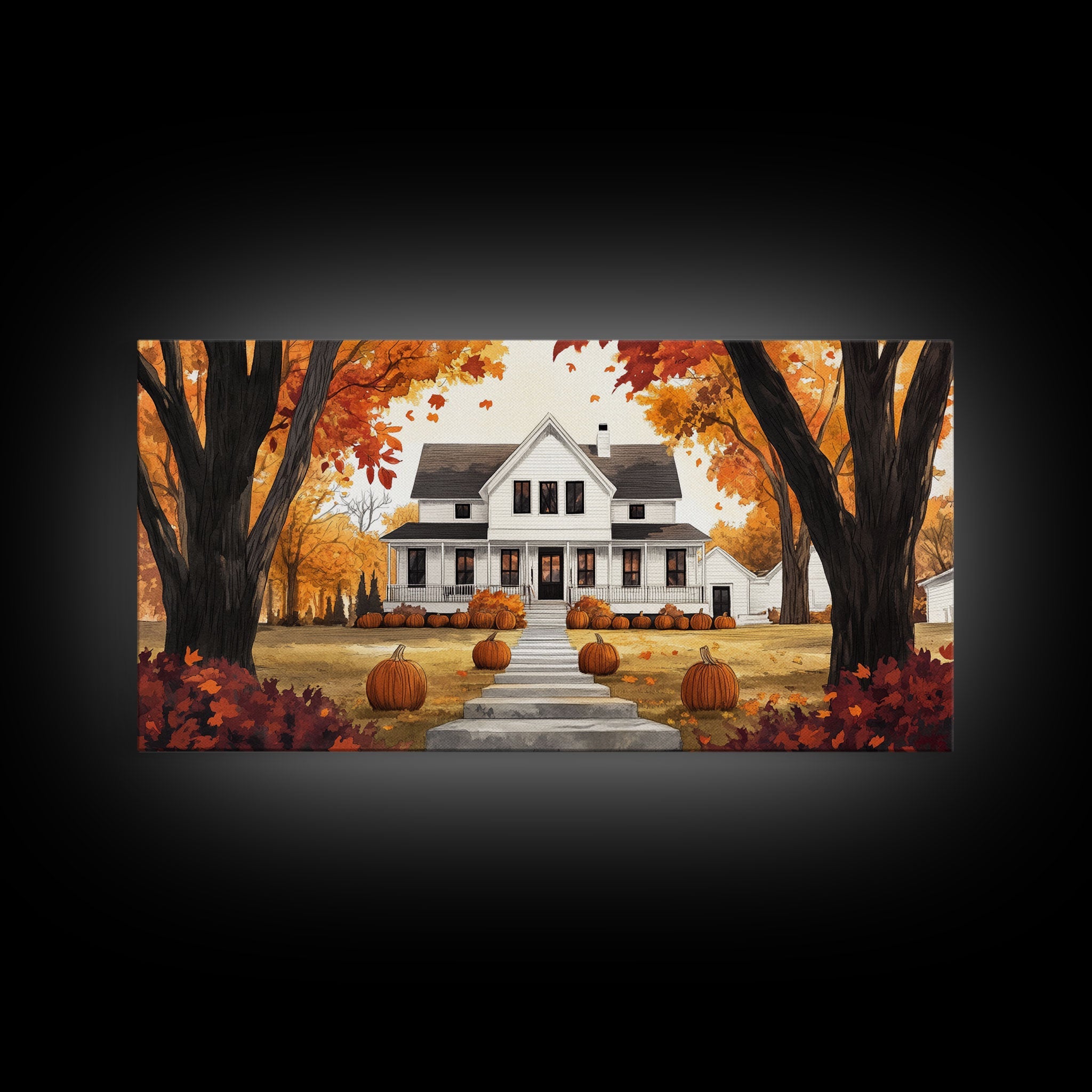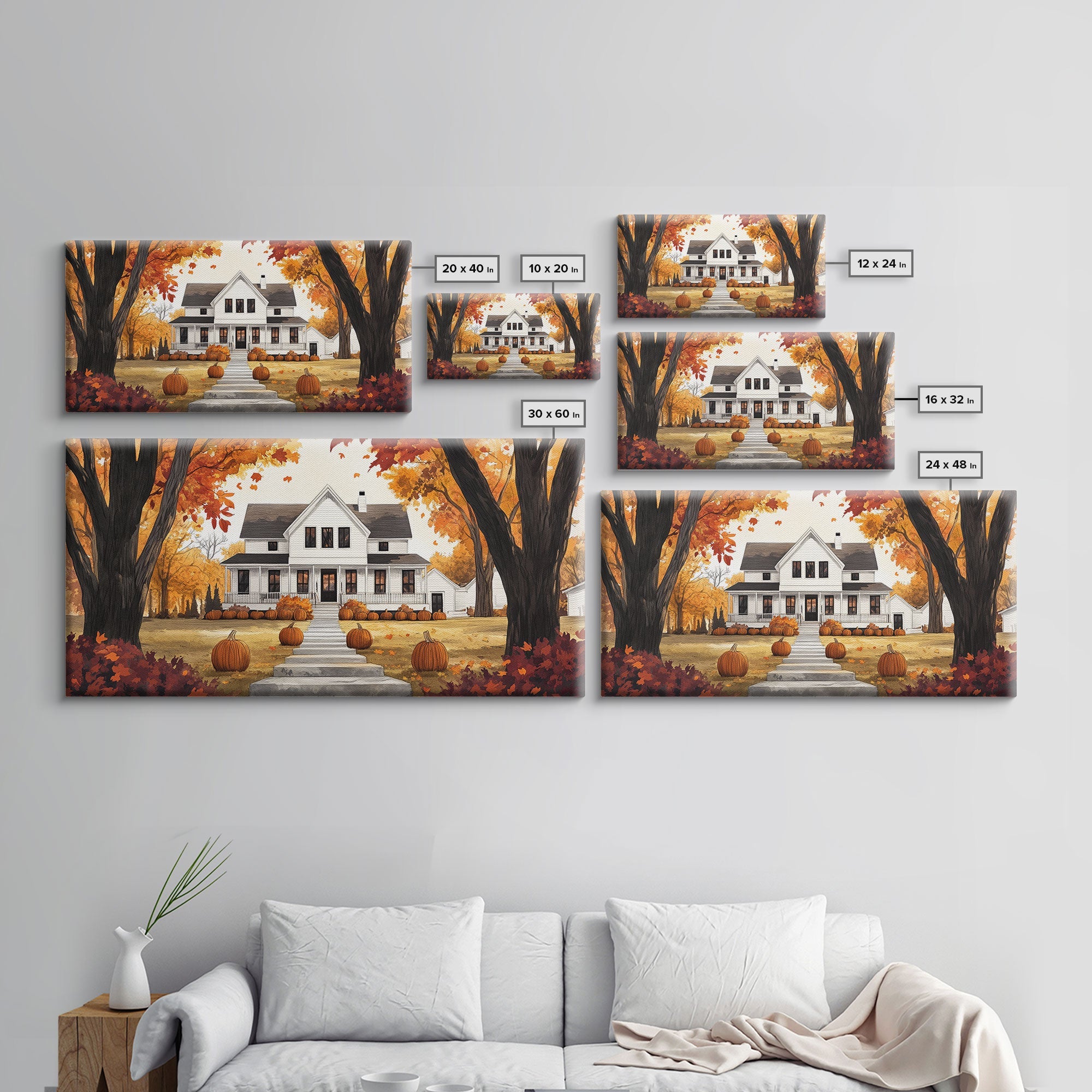 Fall farmhouse pumpkin decor, autumn country home art, rustic fall wall print seasonal wall decor, framed canvas print, autumn farmhouse art
