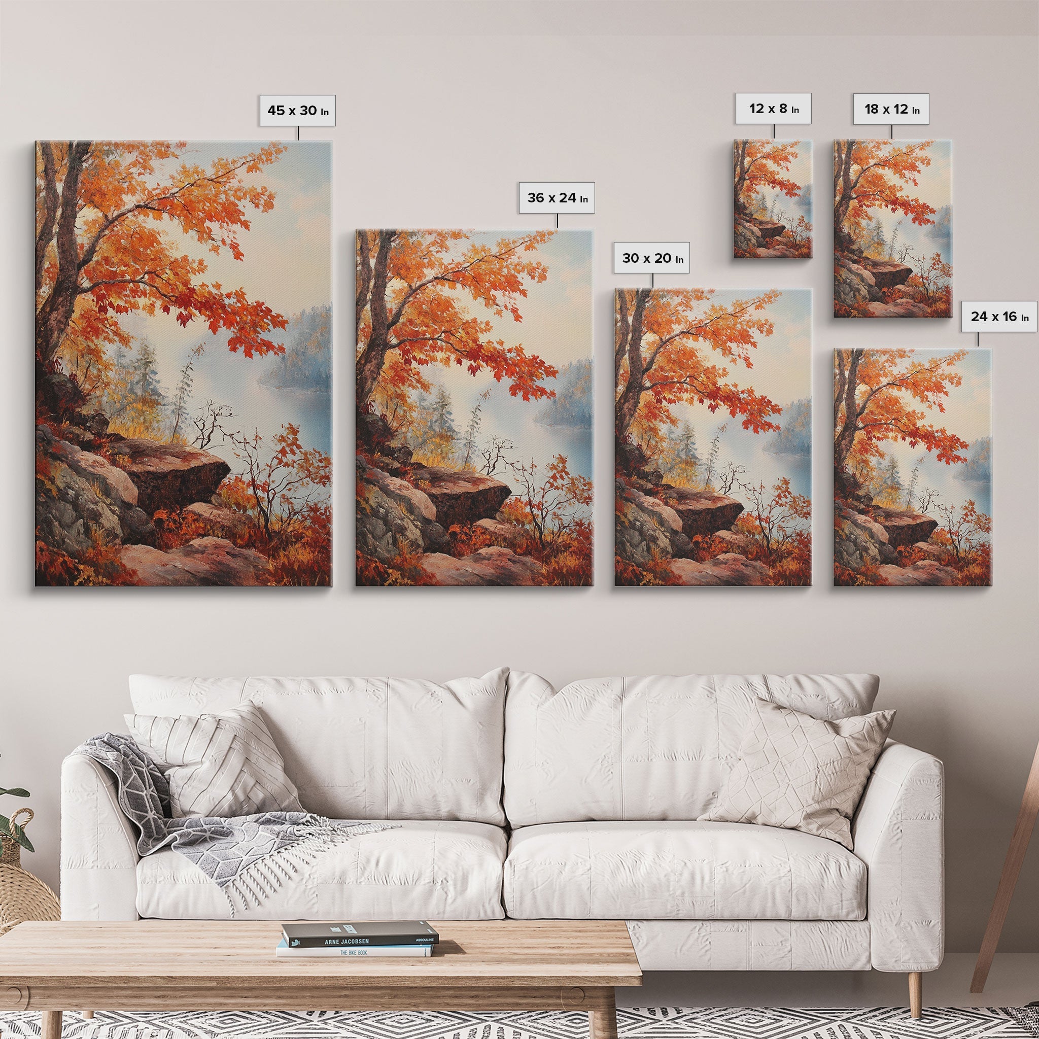• Carregar imagem no visualizador da galeria, Fall In The Virginia Mountains - Framed Canvas Print - Autumn Leaves Falling On The Mountain Lake Landscape