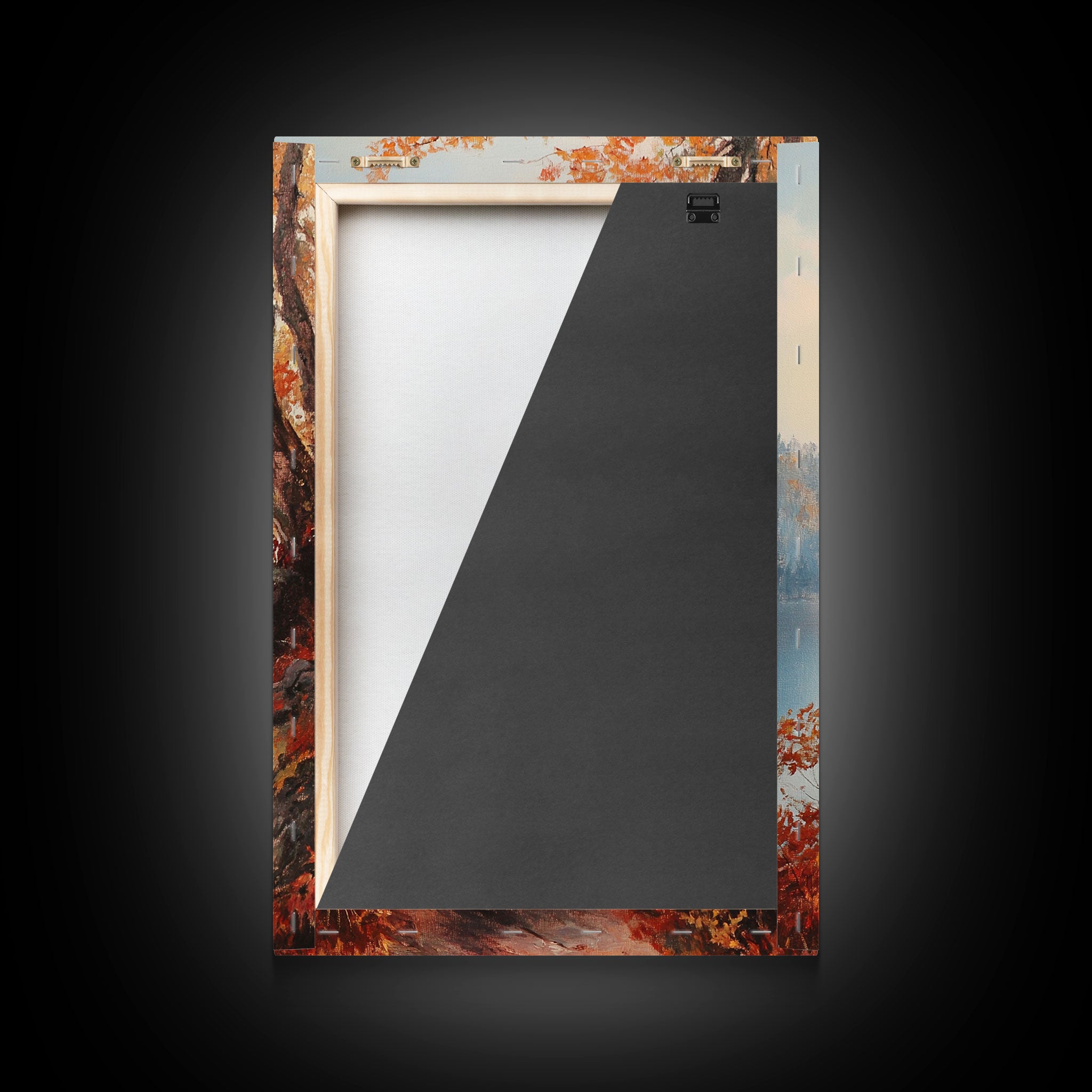 Fall In The Virginia Mountains - Framed Canvas Print - Autumn Leaves Falling On The Mountain Lake Landscape