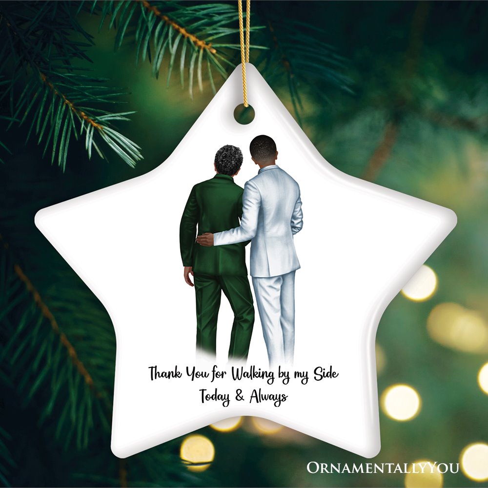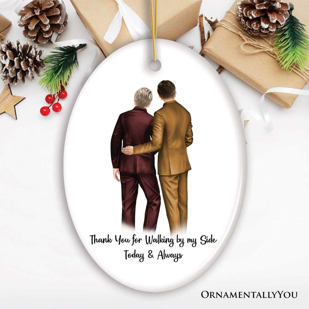 Celebrate the cherished bond between a father and son on the special day of a wedding with our Father and Son Wedding Groom Personalized Gift Ornament! 👨👦🎩✨ This beautiful ornament captures the heartfelt moment of a father and his son sharing in the joy and excitement of the groom's wedding day. It's a sentimental and meaningful gift that will be cherished for years to come. Crafted with attention to detail and adorned with elegant accents, this ornament serves as a timeless keepsake, representing the love and support of a father throughout the wedding journey. Hang it on the tree, display it on a mantel, or present it as a heartfelt gift to the father and son duo. Make the wedding memories last with our Father and Son Wedding Groom Personalized Gift Ornament. 👨👦🎩✨💍