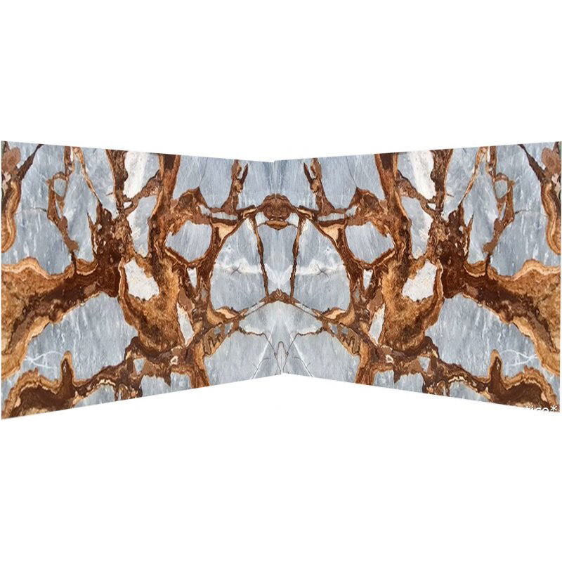 • Book matching occurs when two or more natural stone slabs are mirrored to match the pattern, movement, and veining found in the material. When the slabs are placed end to end, the veining and movement continue from one slab into the other, creating a continuous flow or pattern