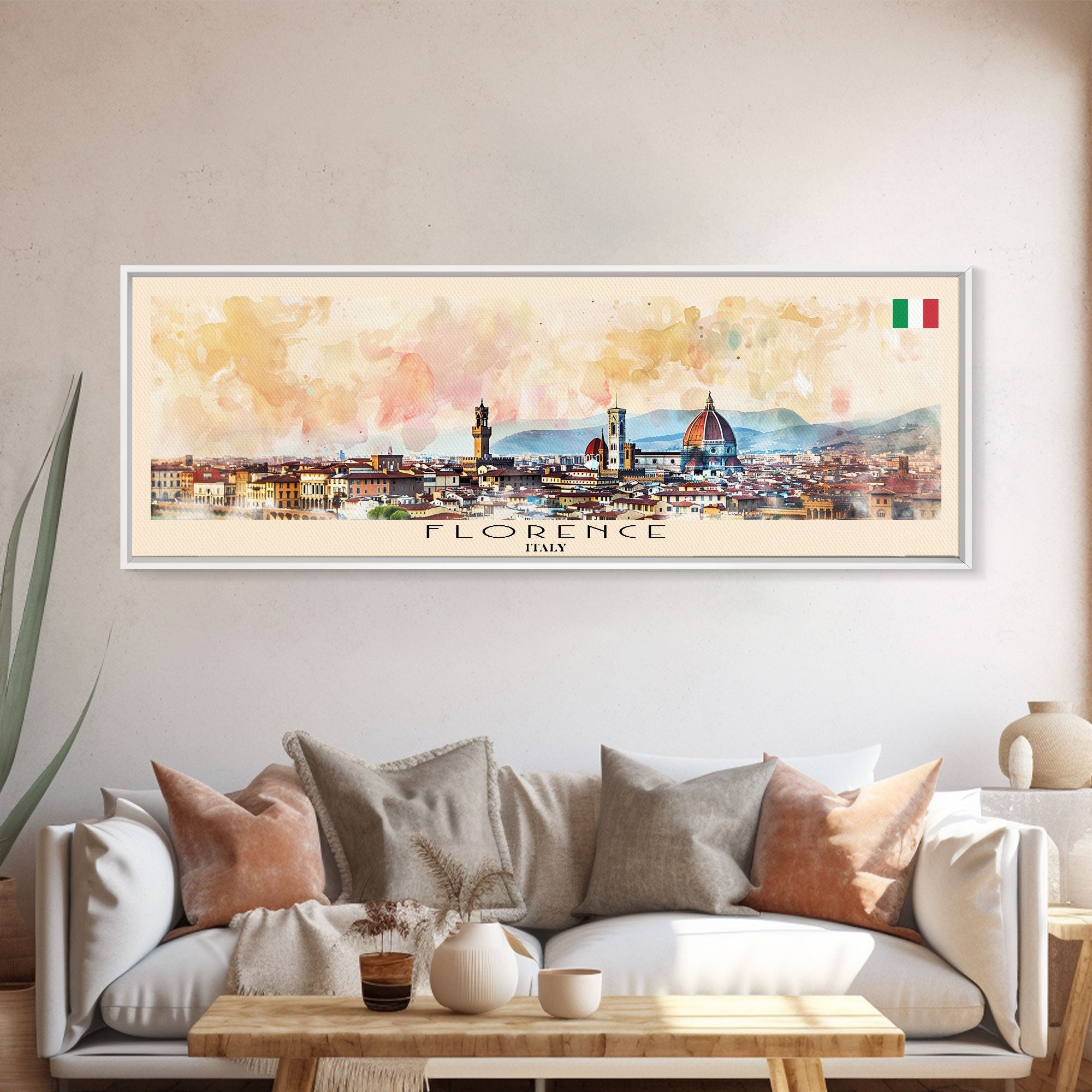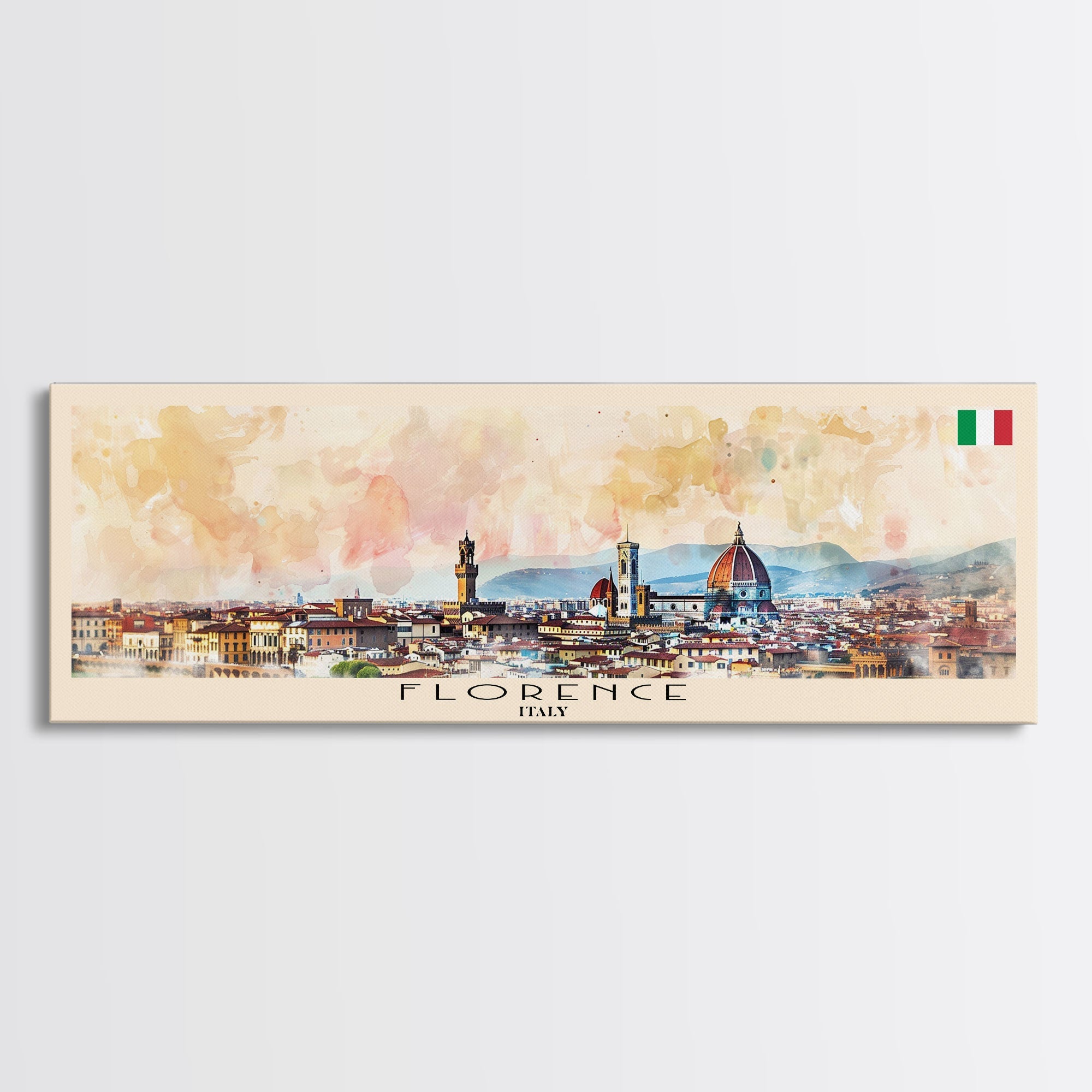 Florence Italy Panoramic Travel Poster, Framed Canvas Print or Metal Wall Art, Travel Art, Home Decor, Panoramic Painting, Midcentury Art