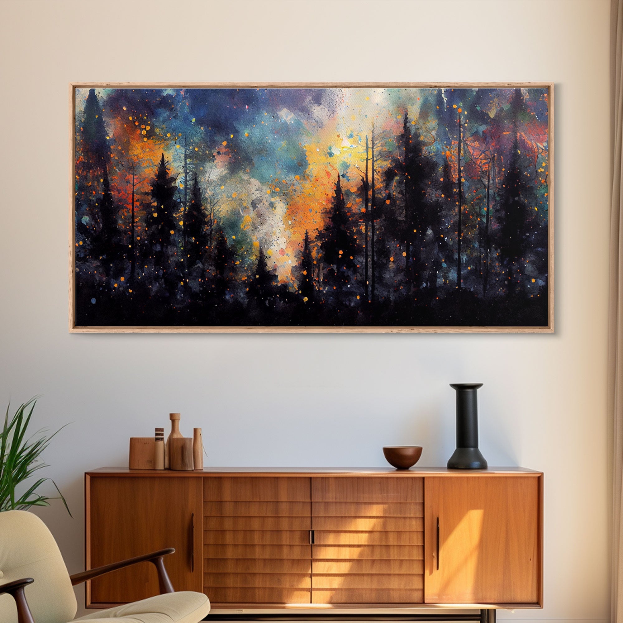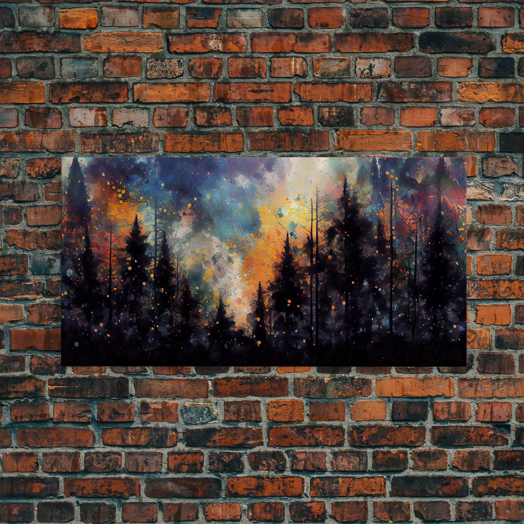 Forest Fire Abstract, Forest Landscape Wall Art, Framed Canvas Print, Pine Tree Canvas, Pine Tree Artwork, Pine Tree Canvas Art, Wall Decor