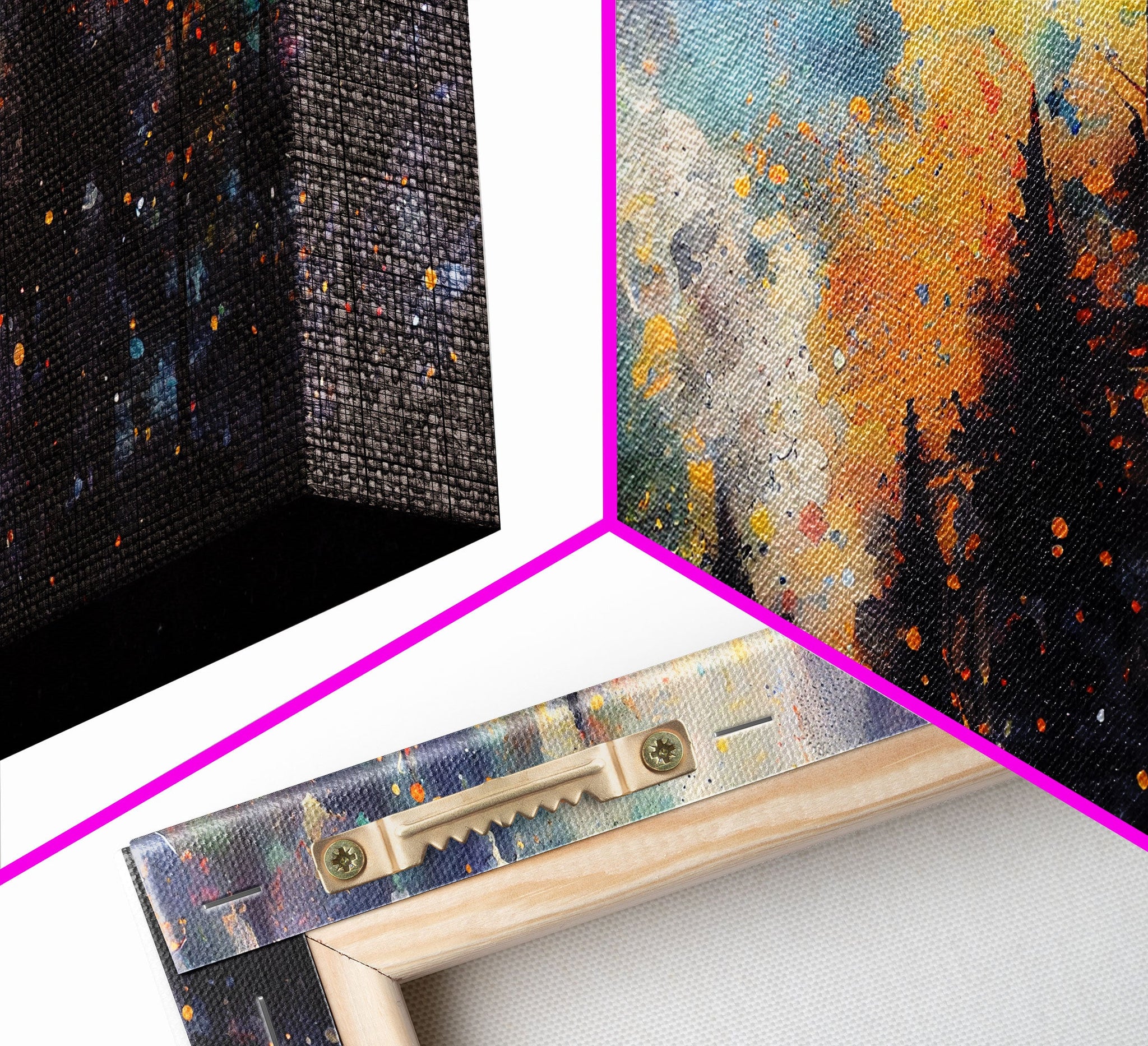 *SHIPPING: Every canvas is carefully wrapped in bubble wrap and foam corner protectors, and shipped fully assembled and ready to hang with sawtooth hangers in a flat box. All you need is a hammer!