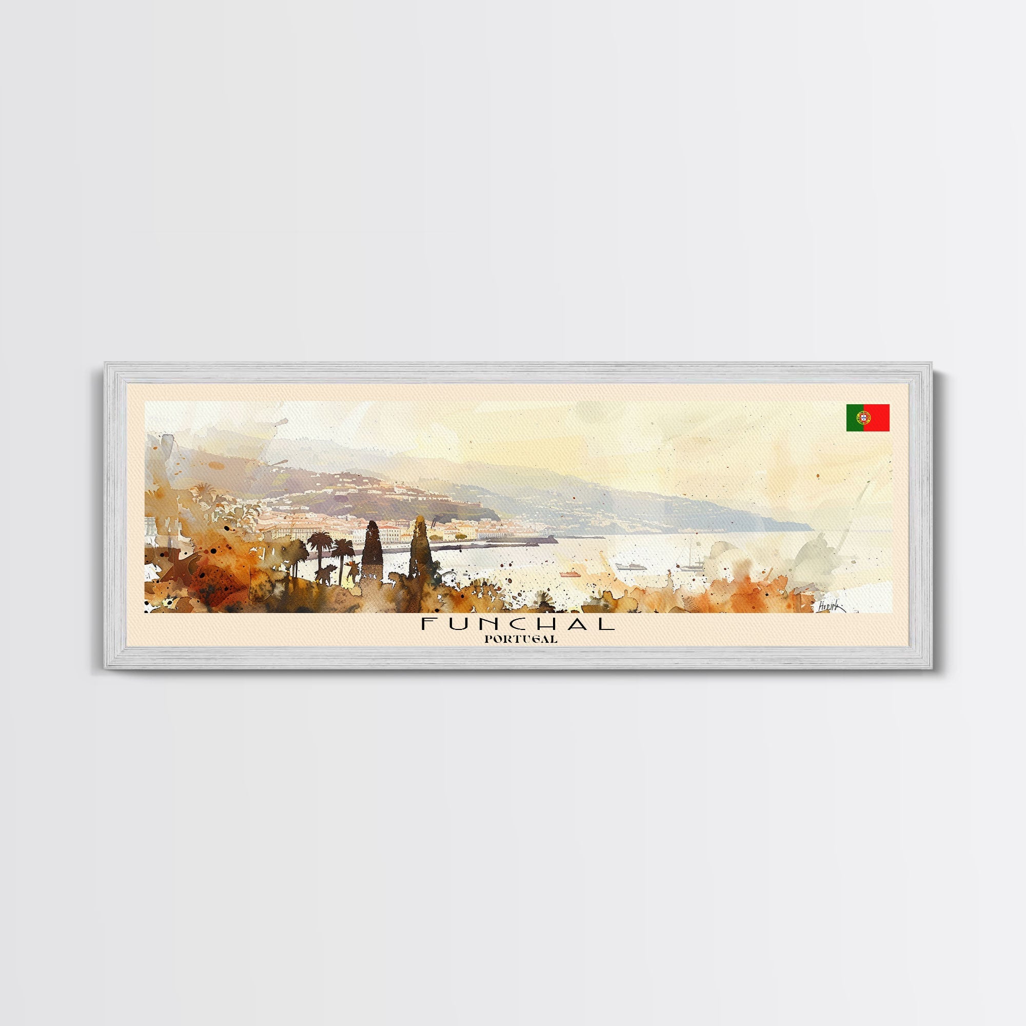 Funchal Portugal Travel Print Wall Art, Panoramic City Art, Travel Art, Wall Decor, Vacation Gift, Framed Canvas Print Or Metal Art