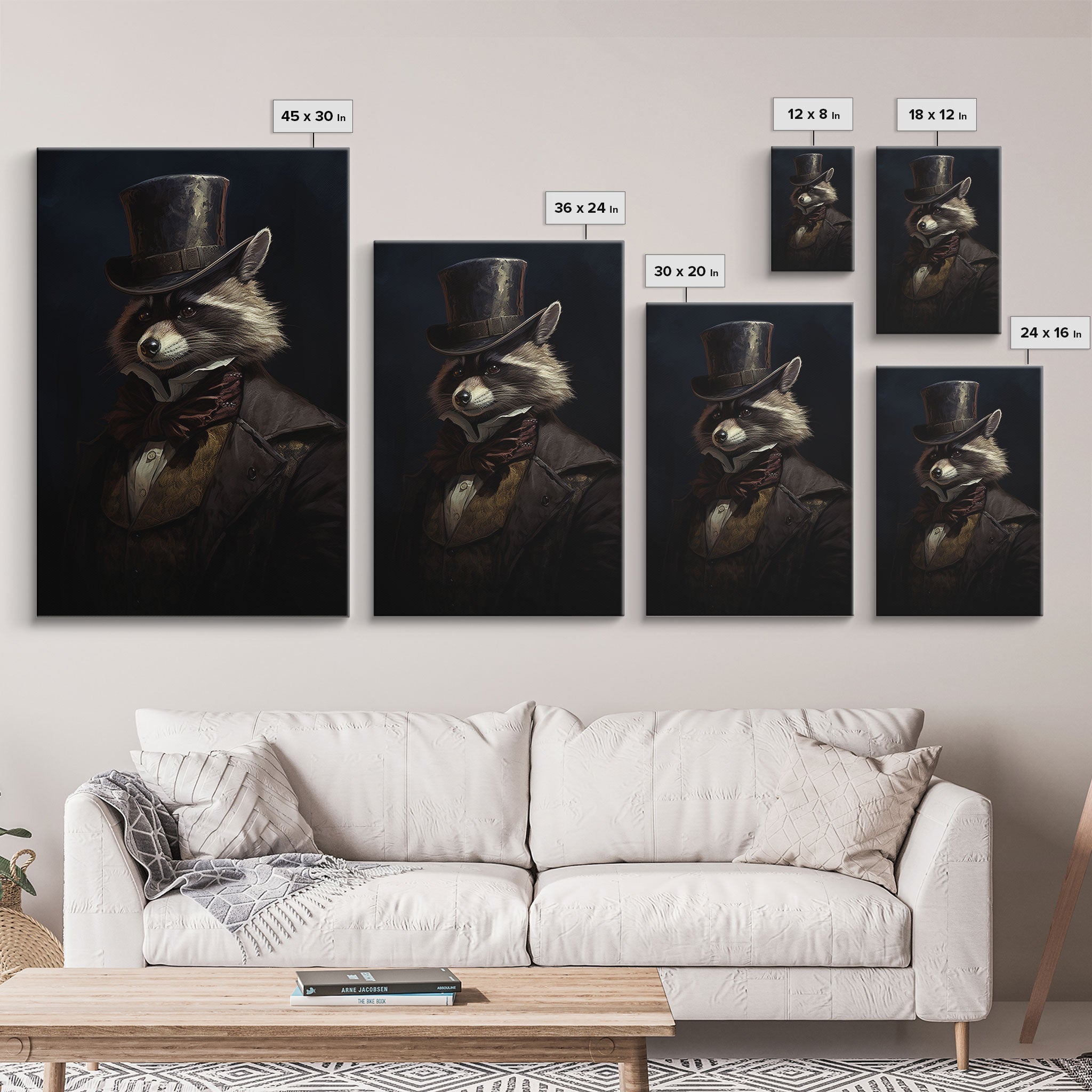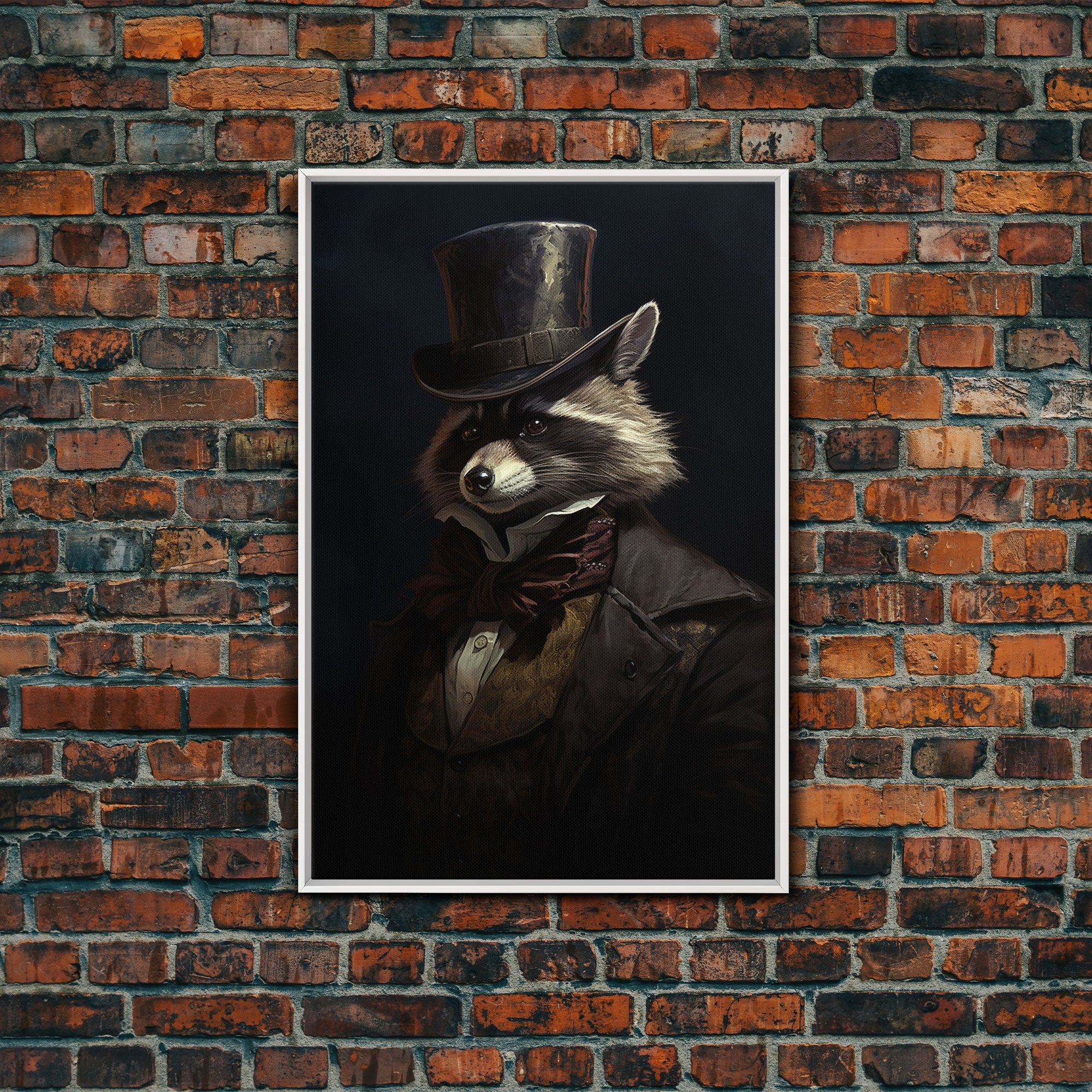 Funny Raccoon Art, Framed Canvas Print Or Poster, Funny Halloween Art, Victorian Raccoon Oil Painting Portrait, Victorian Business Raccoon