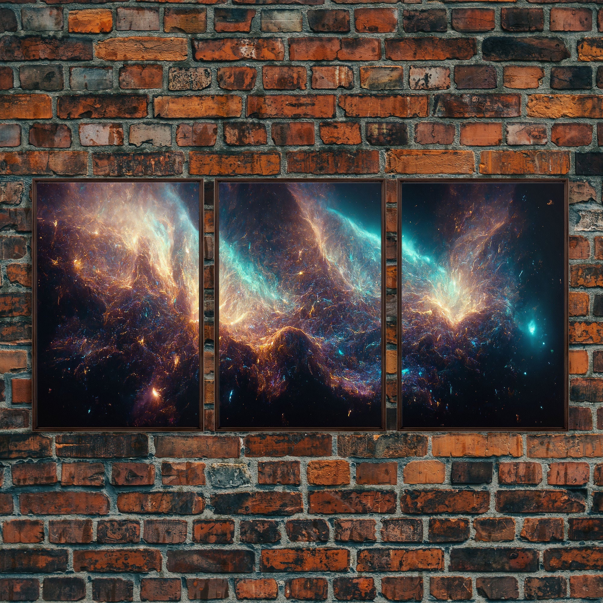 Galaxy of Stars, Scifi, String Theory, 3 Piece Wall Art, Ready To Hang Canvas Print, Cool Living Room Wall Art Decor