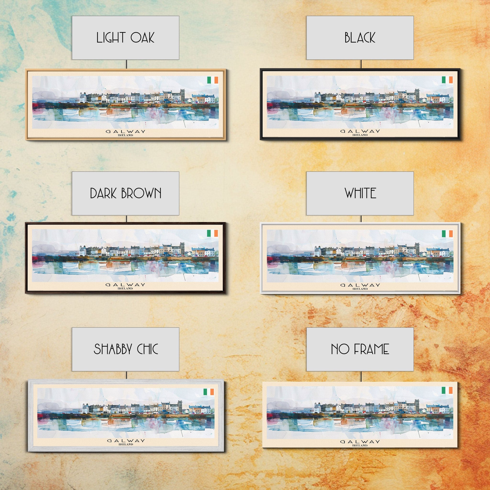 Galway Ireland Panoramic Travel Poster, Framed Canvas Print or Metal Wall Art, Travel Art, Home Decor, Panoramic Painting, Midcentury Art