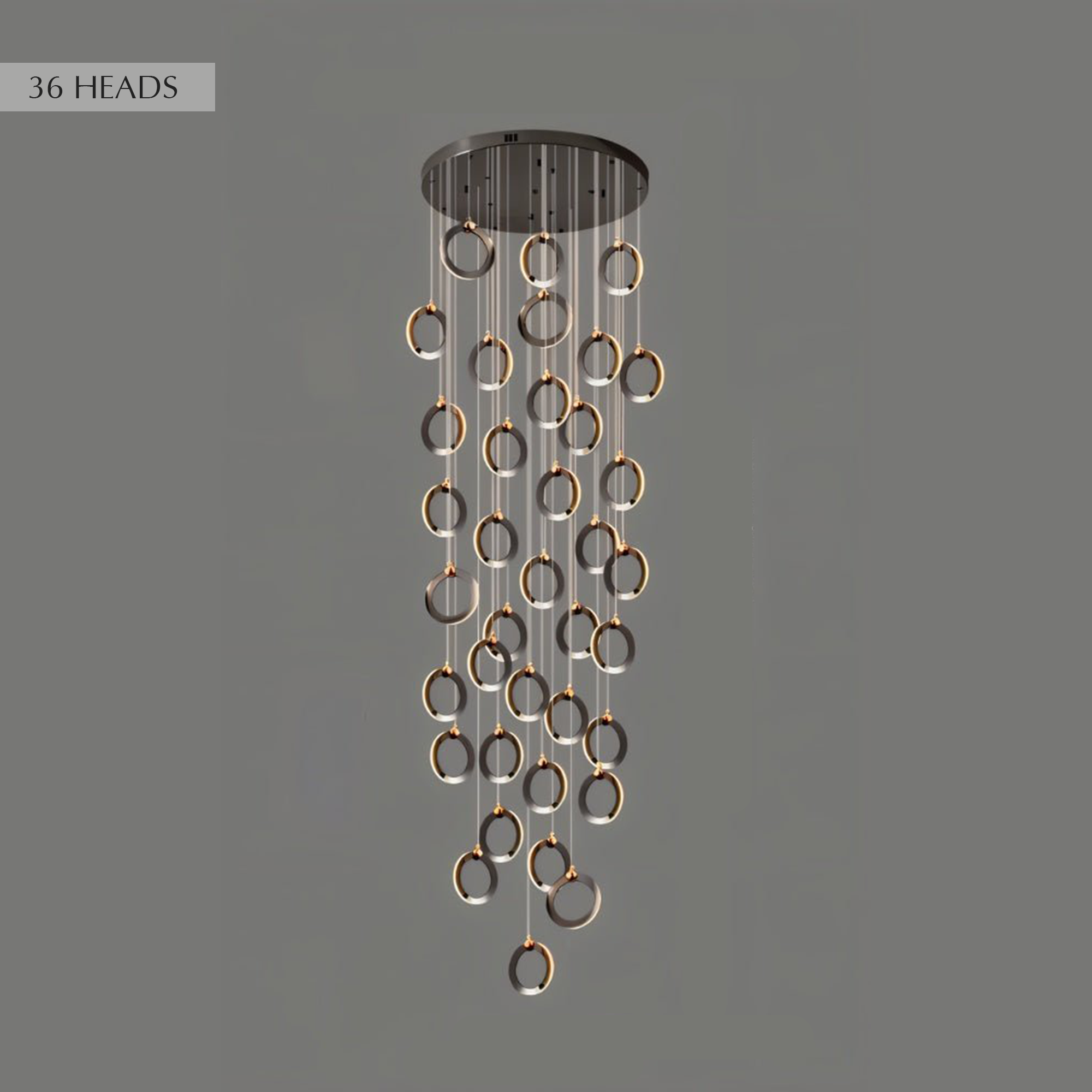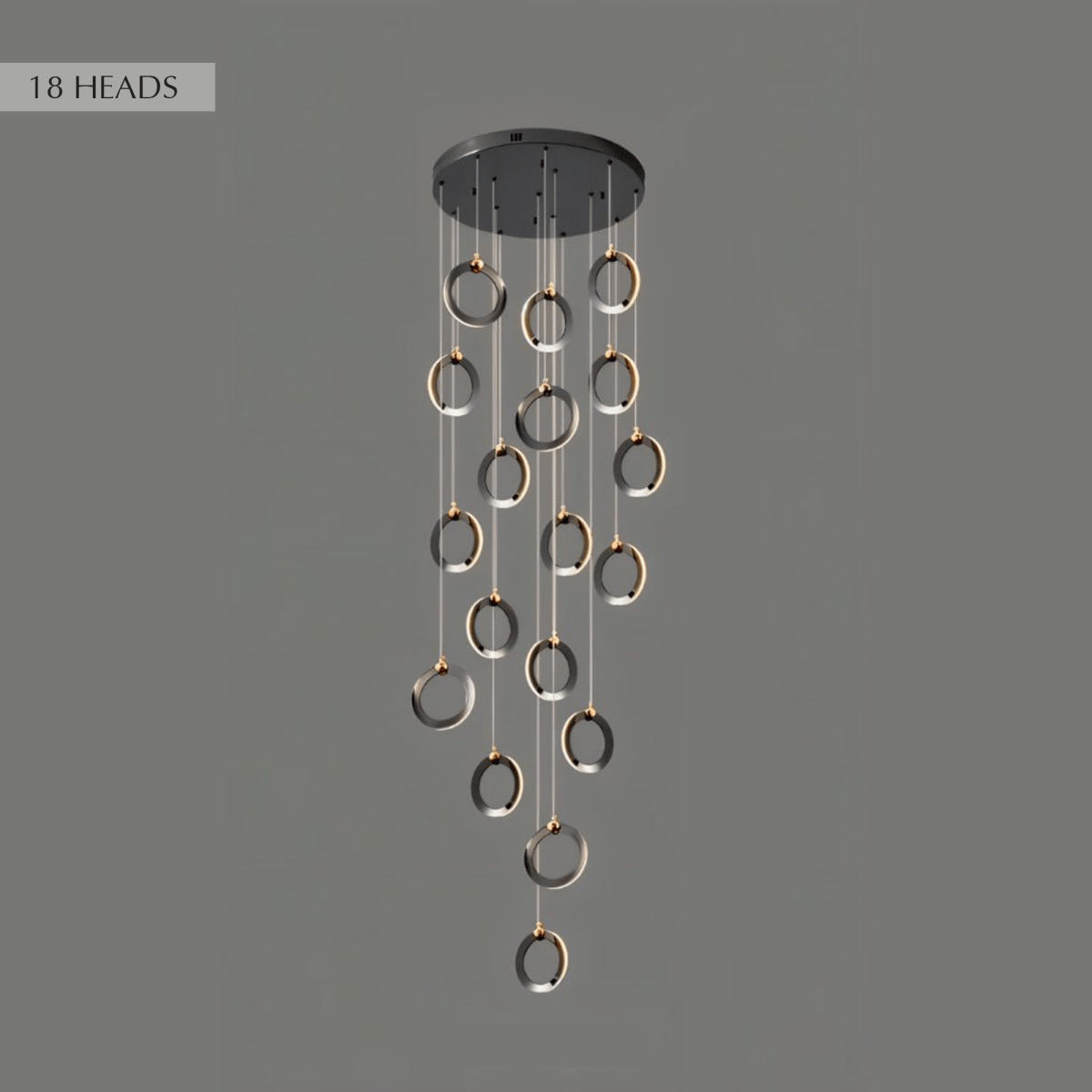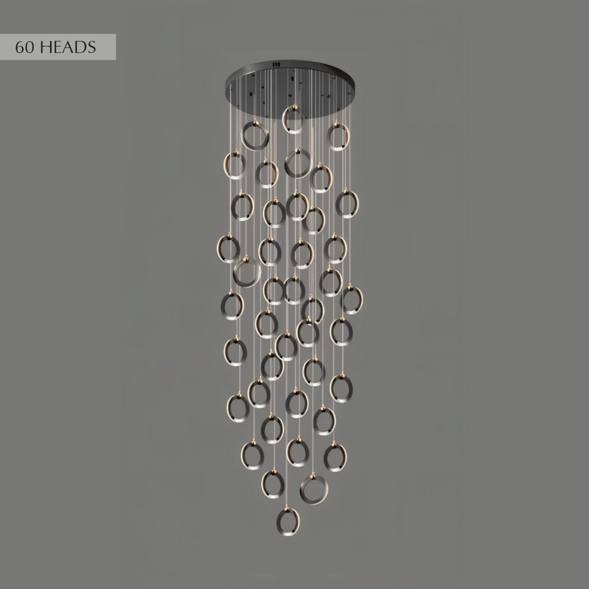The Khaatem Chandelier combines simple style and futuristic design with its metal rings featuring integrated LED Acrylic lights, offering various ring quantities to suit your space. Casting an ethereal glow, this chandelier's captivating charm will leave your living room, staircase, or lobby aglow, enchanting all who enter. It's the ideal choice to accentuate your space with mesmerizing allure.