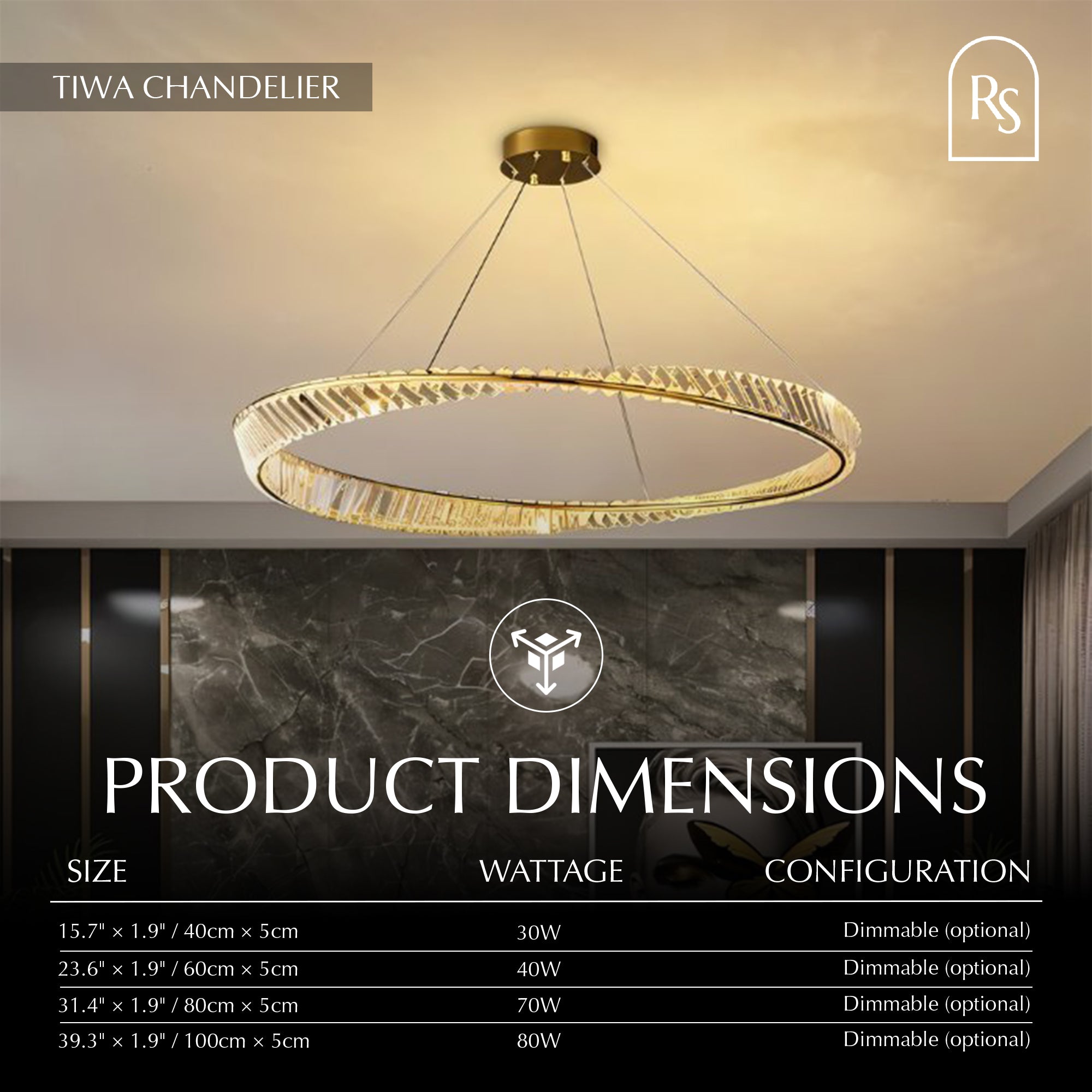 The Tiwa Chandelier is ideal for creating the perfect ambiance. Constructed from superior-grade Metal, this stylish lamp features innovative rings with a crystal lampshade to bring an elegant flair. Equipped with energy-efficient LED lights and a glass surface that refracts light, it is sure to illuminate any room captivatingly.